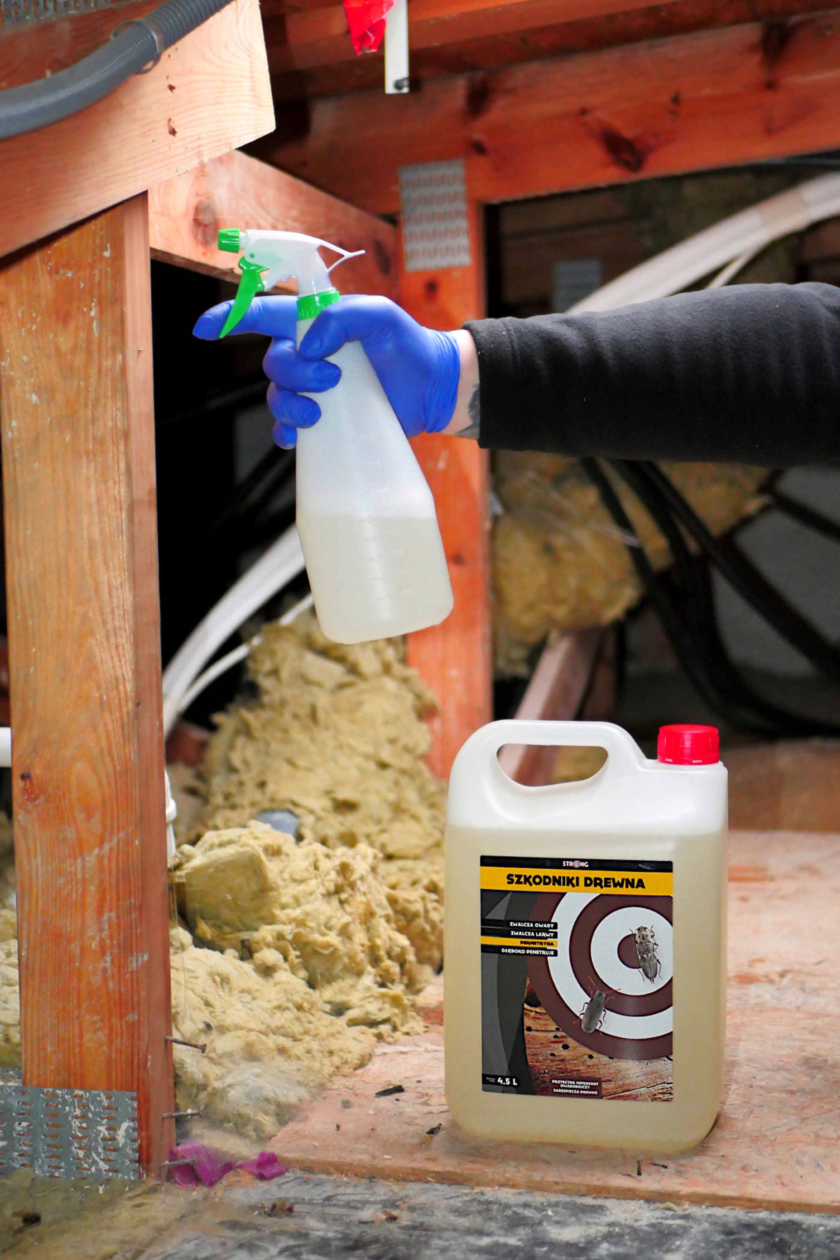 Препарат без цвета и запаха СТРОНГ ОТ ВРЕДИТЕЛЕЙ ДЕРЕВА предназначен для защиты строительной и строительной древесины от действия насекомых (технических вредителей древесины) и термитов, а также что касается борьбы с уже зараженной древесиной. Средство не повреждает ткани и бумагу, но, что более важно, не обесцвечивает защищаемую древесину. Средство также можно использовать для защиты древесины от повторного нашествия древоточцев, а также для защиты от бактерий, грибков и водорослей.