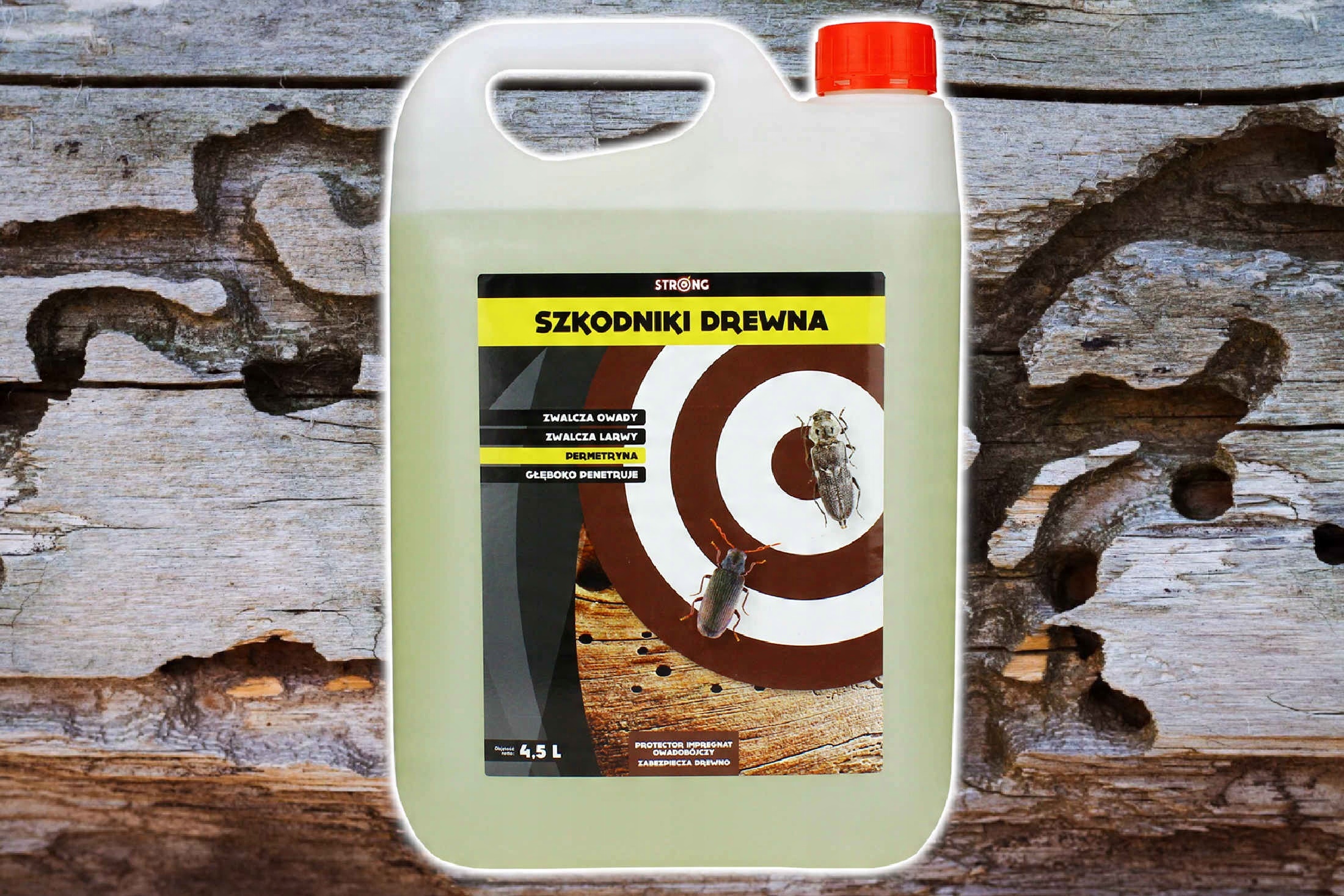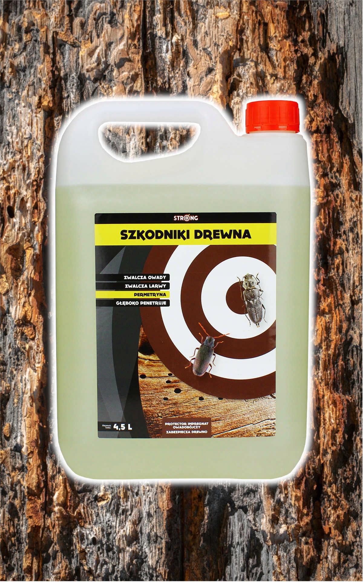 Инсектицидная пропитка СТРОНГ ДЛЯ ВРЕДИТЕЛЕЙ ДЕРЕВА — защитное средство нового поколения, используемое для борьбы с вредителями древесины. Особенно эффективен против листового клеща (Anobium Punctatum), листового клеща (Hylotrupes bajulus), пульпового клеща (Lyctus brunneus), серебристого листовертого клеща (Sirex gigas), термитов, короедов и других.