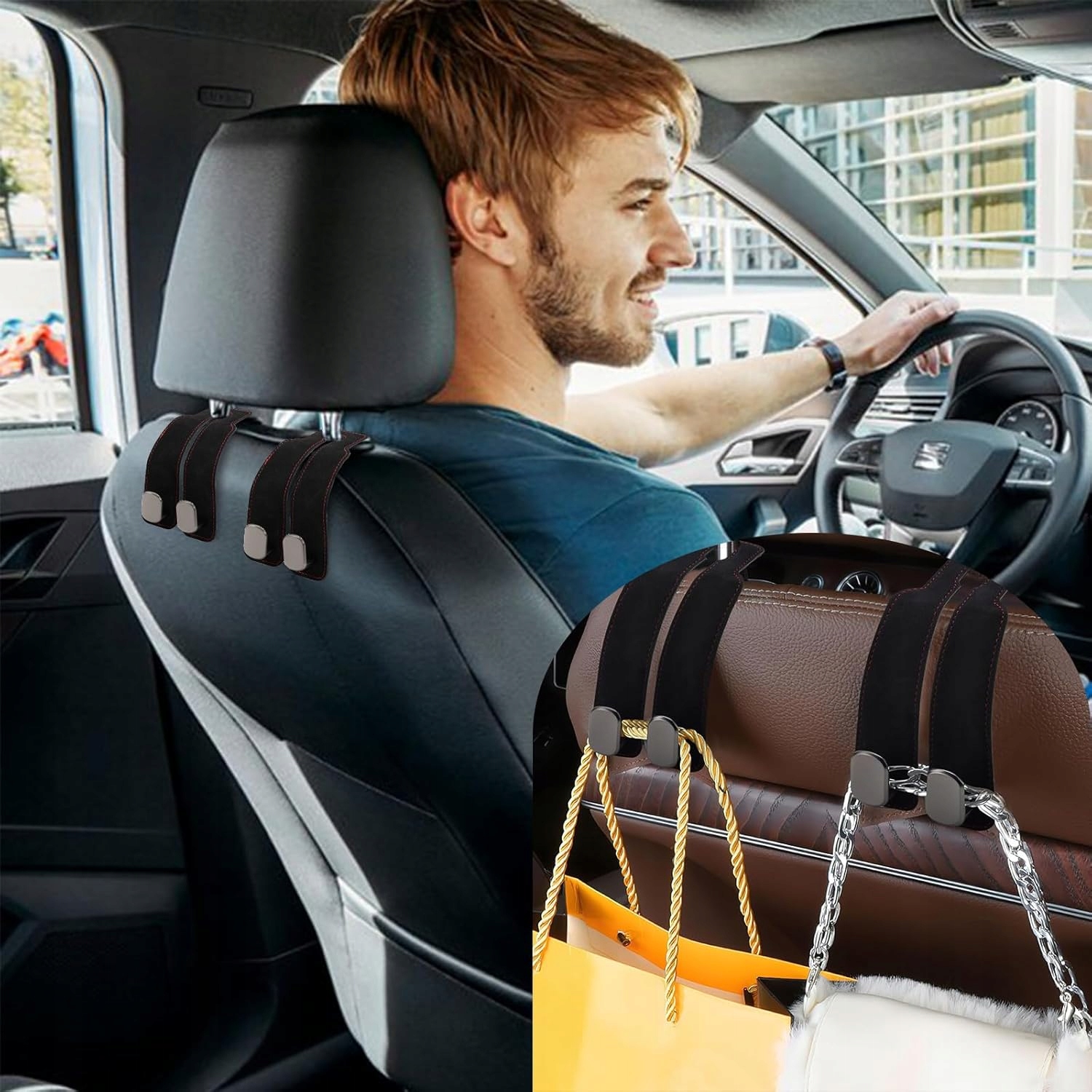 🪝 Скажите грязные автокресла благодаря нашим автомобильным крючкам. Наши крючки для автомобильных мешков удваивают место для хранения в машине, позволяя повесить больше предметов, сохраняя при этом порядок и стиль. p>