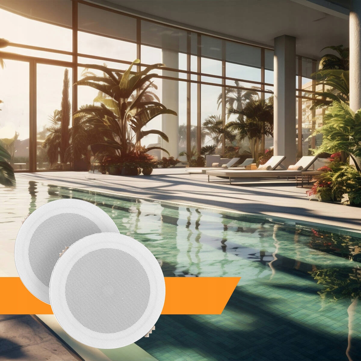 2 водонепроницаемых потолочных громкоговорителя 2x 5 дюймов, 80 Вт для террасы, бассейна, кухни и ванной комнаты