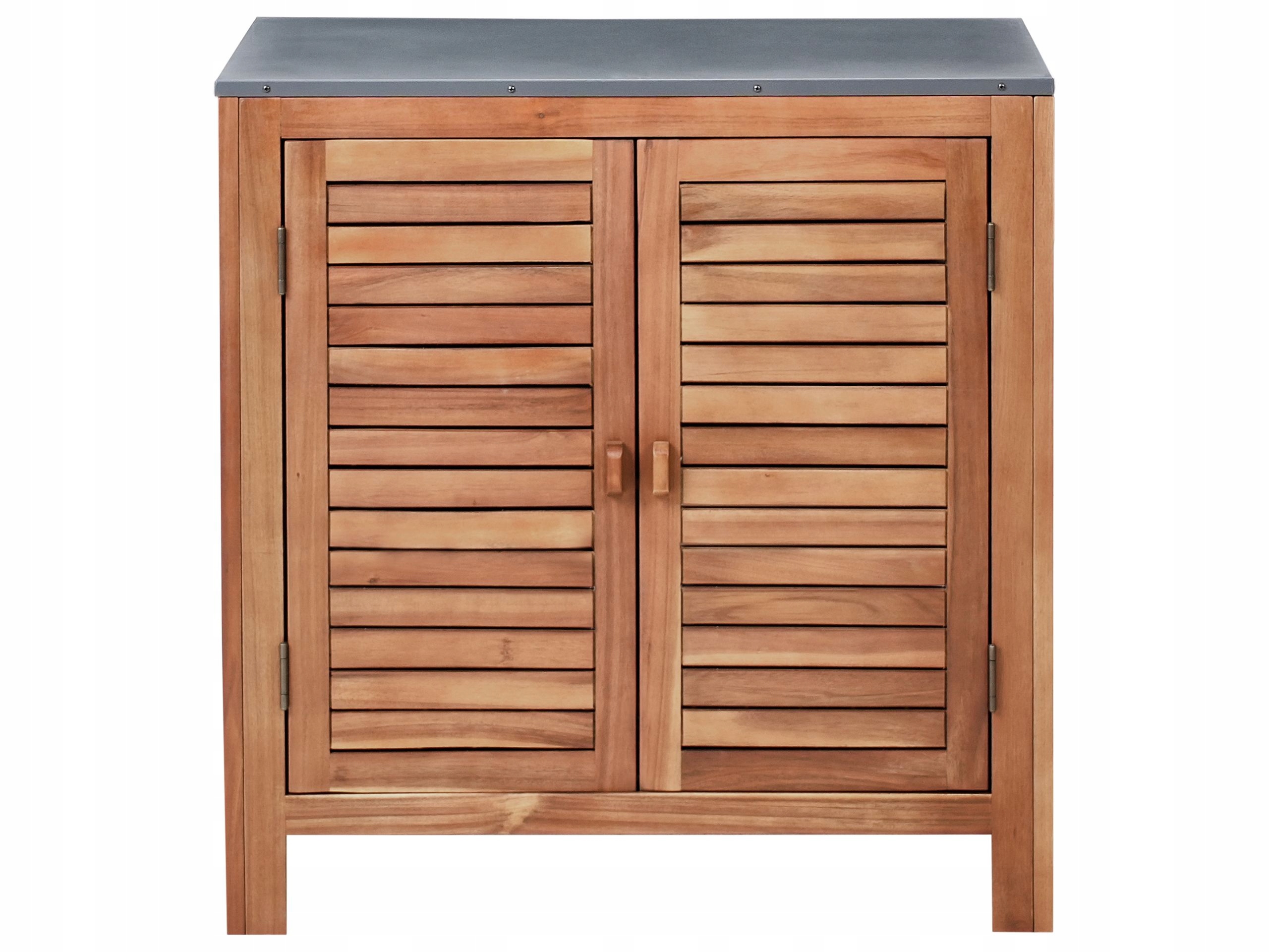 Измените приготовление в саду благодаря этому элегантному садовому кухонному острову со встроенной раковиной и батареей с растянутым носиком. Изготовлен из твердой акации древесины и отделан гладким, стальным верхом, сочетает в себе вечный стиль с сопротивлением внешним условиям. Идеально подходит для приготовления блюд, подачи блюд и удобной чистки после гриля. За дверью с открытой работой вы найдете просторные полки для посуды, аксессуаров и всех необходимых вещей на садовой кухне. Шкаф устойчив к ультрафиолетовому излучению и ржавчине, благодаря которой он будет идеальным на террасе, в саду или у бассейна.