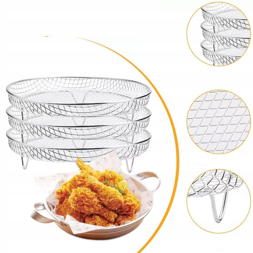 3. Высококачественный безопасный материал для пищи: качественная версия 3-уровневой воздушной фритюрной подставки изготовлена из 304 из нержавеющей стали с пищей, твердой и долговечной, без BPA, безопасной и нетоксичной, нелегкой для ржавчины и коррозионной.