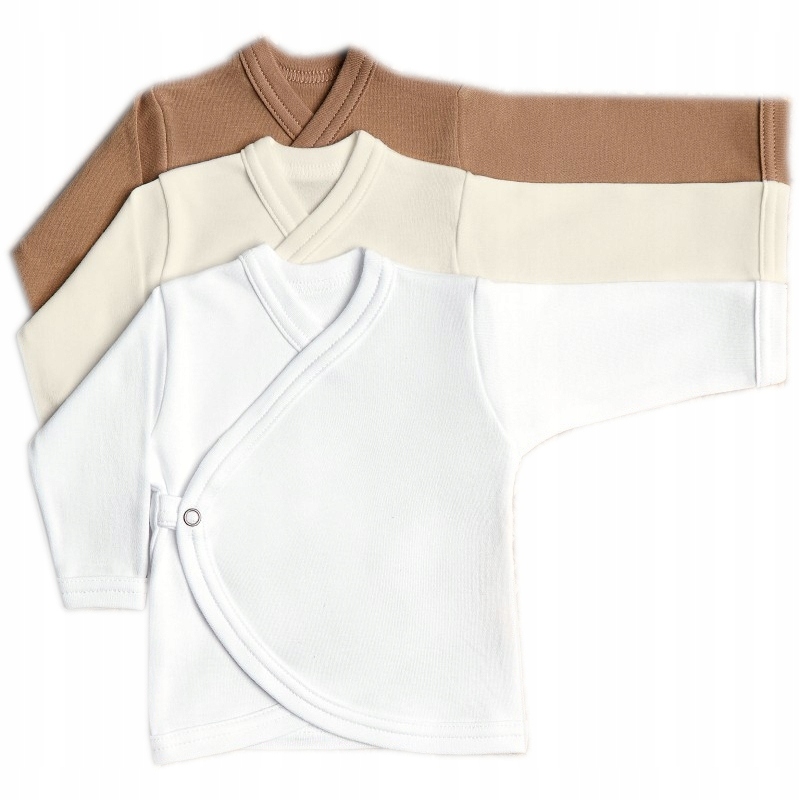 3x Детский кафтан с длинными рукавами кроя-конверта - т. н. конверт. Изготовлен из мягкого, комфортного хлопка. Футболка застегивается на кнопки. Застежки, используемые в нашей одежде, не содержат никеля, что делает ее безопасной для нежной детской кожи и неаллергенной.