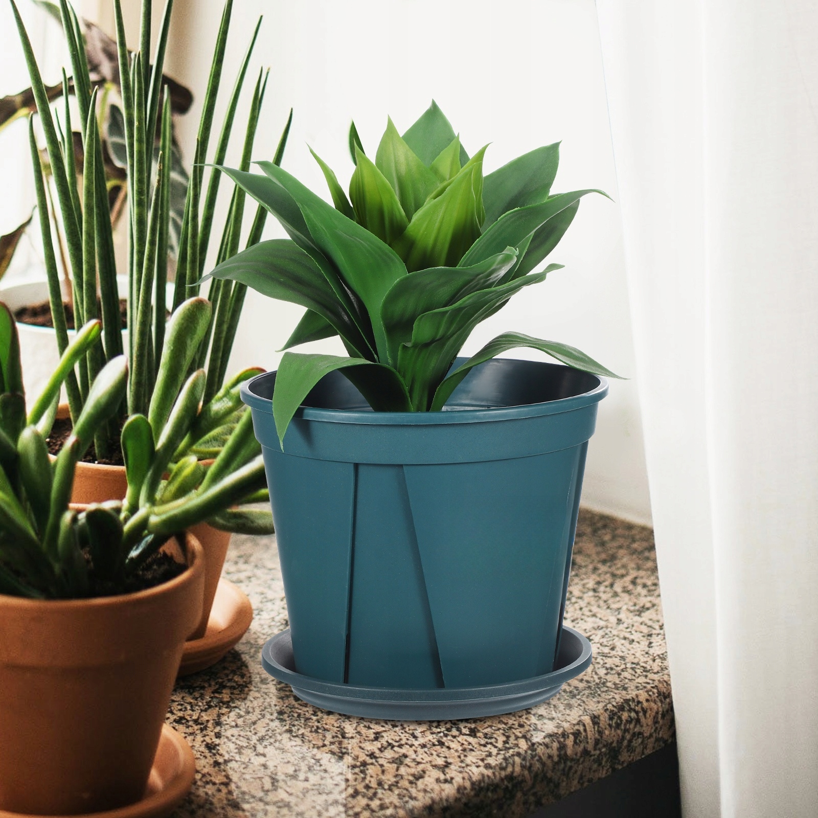 ✅ В комплект входит практичный поддон: горшок оснащен поддоном, который собирает лишнюю воду, предотвращая беспорядок и повреждение поверхности водой.