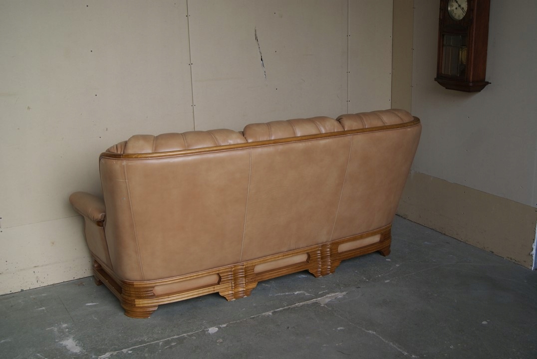 3-МІСЦЕНИЙ ДИВАН З НАТУРАЛЬНОЇ ШКІРИ НА РАМІ З ДУБА