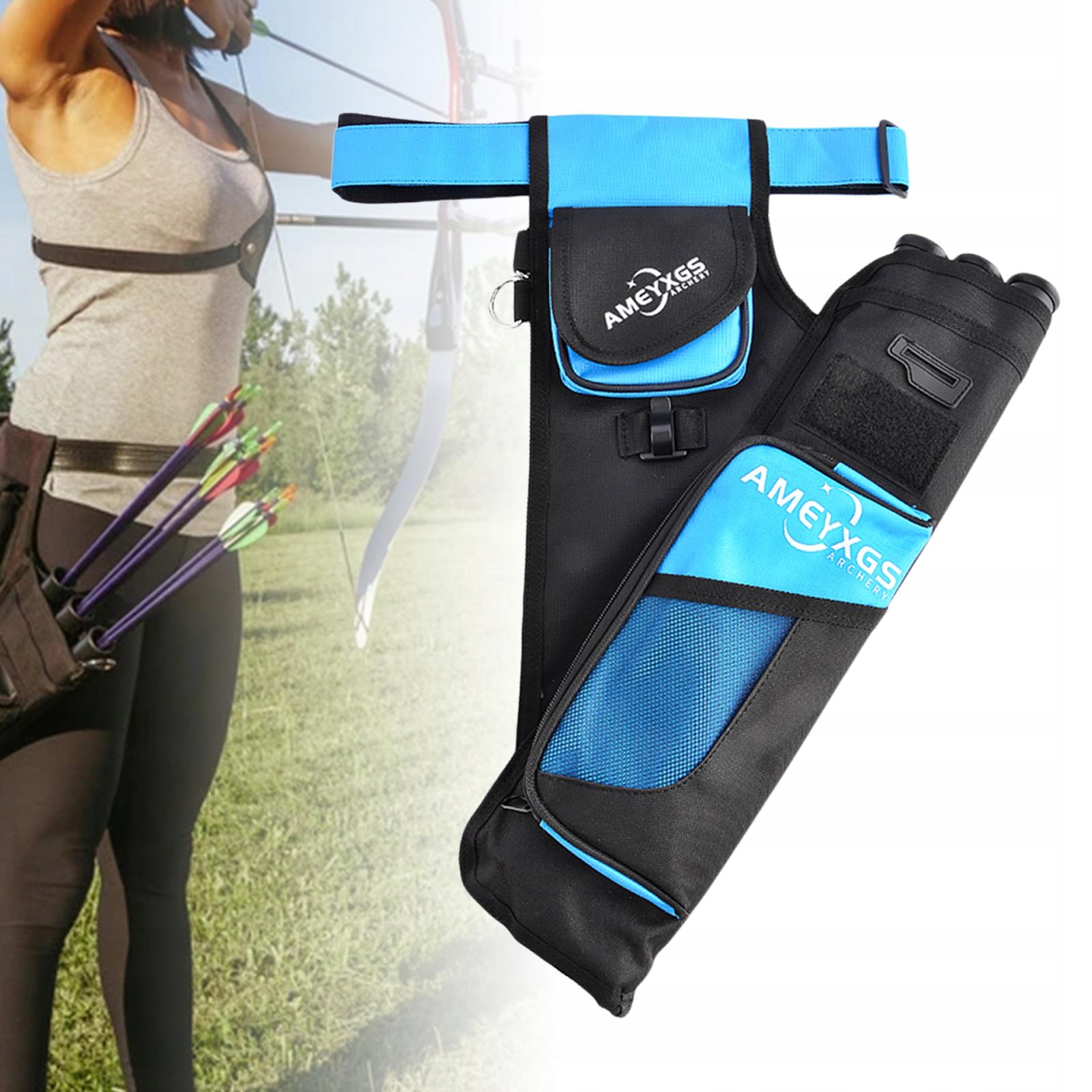 Колчан из трех частей с регулируемой пряжкой для удобного ношения в большом объеме, вмещает 30 эк, выдерживает длину стрелы