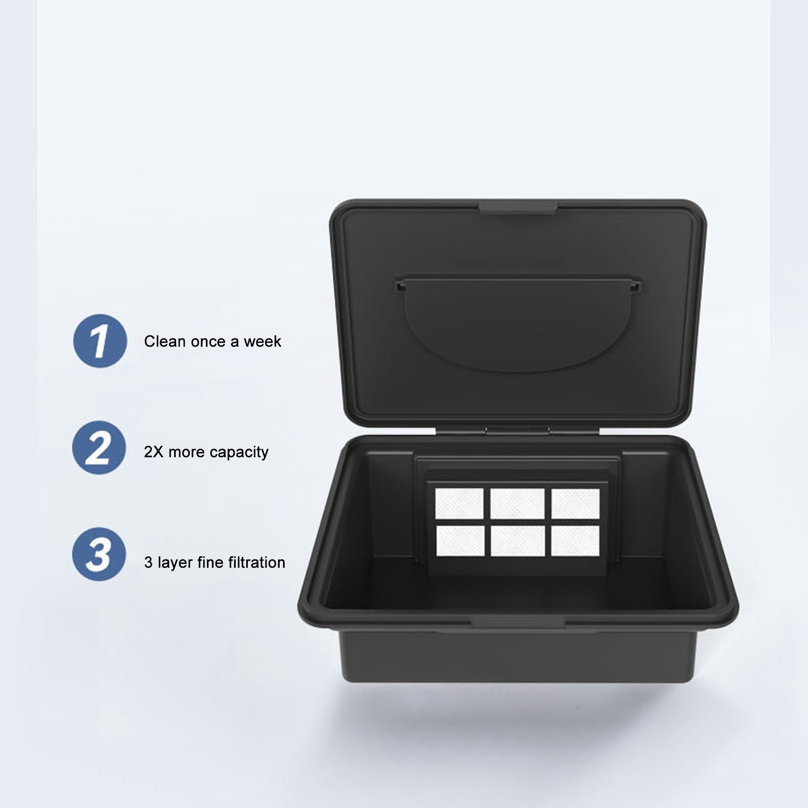 4. 510 мл пылевой контейнер: этот широкий робот имеет пылевой контейнер 510 мл, который может хранить много пыли. Фильтр может быть тщательно отфильтрован и может использоваться в течение длительного времени без утечки пыли. Просто чистите его раз в неделю. Сокращение частоты ручной очистки -это больше проблем.