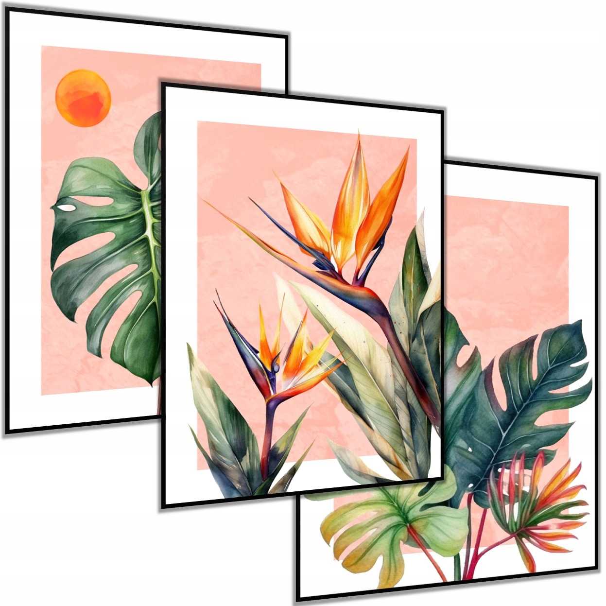 3 x ПЛАКАТ 30X40 ЛИСТЯ ТРОПІЧНІ РОСЛИНИ СТРЕЛІЦІЯ МОНСТЕРА КВІТКА ЛИСТ