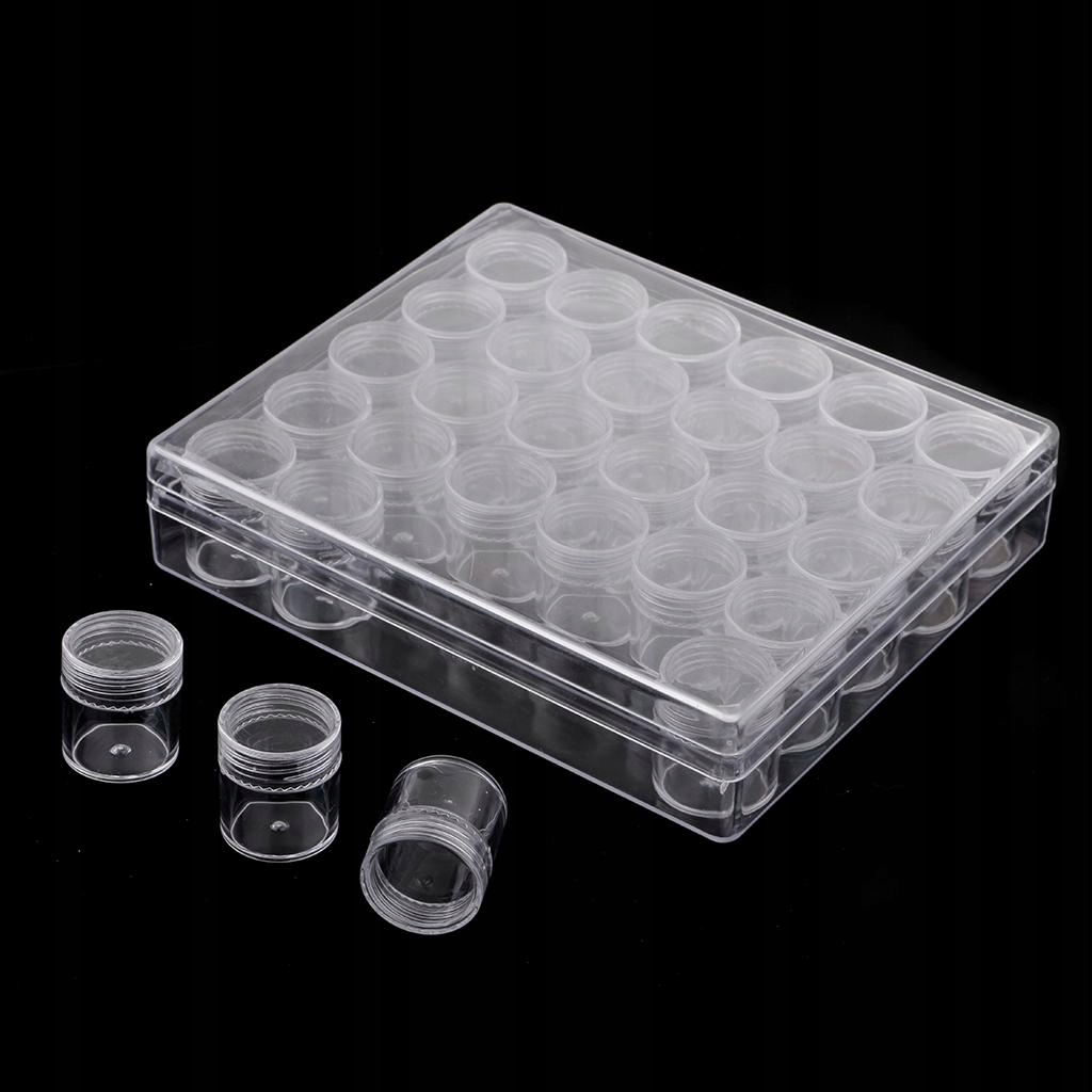 Прозрачный ящик для хранения с 30 местами для круглых прозрачных банок с закрученной крышкой. На первый взгляд, вы можете увидеть, какие бусы и элементы доступны