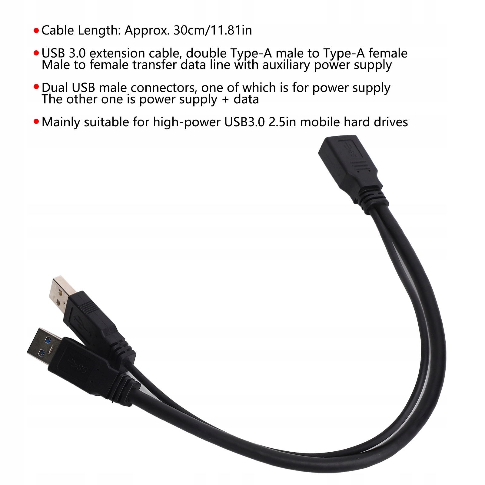 2. USB 3.0 Расширенный кабель, мужчина с двойным типом для женского типа A, мужчина для женского кабеля передачи передачи со вспомогательным источником питания.
