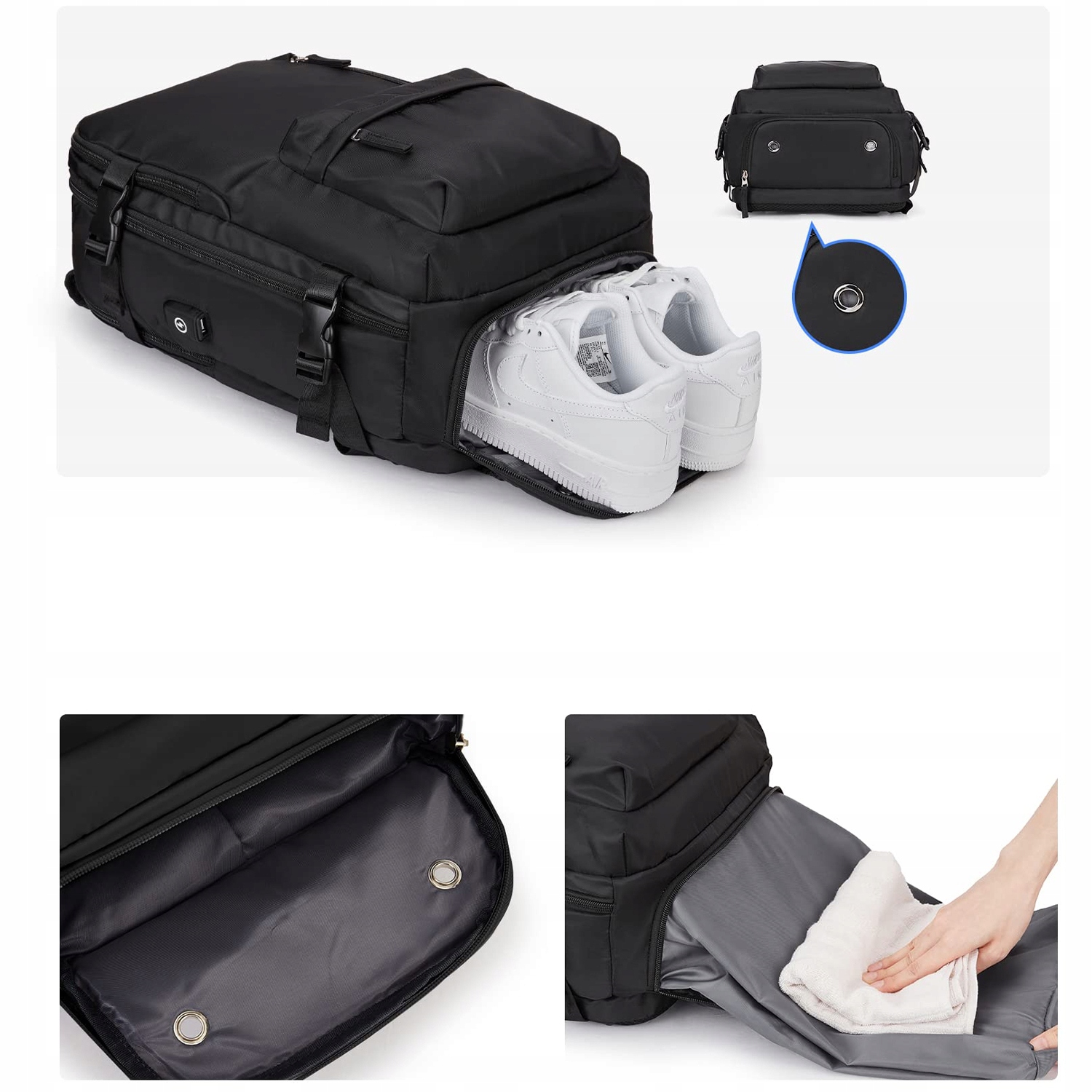 34L рюкзак с регулируемым USB -зажимом для ноутбука и черных туфель