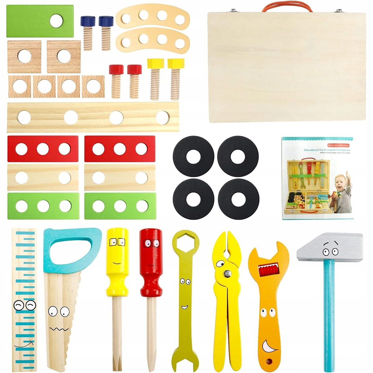 Ящик для инструментов для детей от 3 лет, для мальчика, девочки, деревянный, для игрушек, ящик для инструментов, развивающие игрушки для детей, новогодний подарок, игры для детей от 2 3 4 5 6 лет (34 штуки)