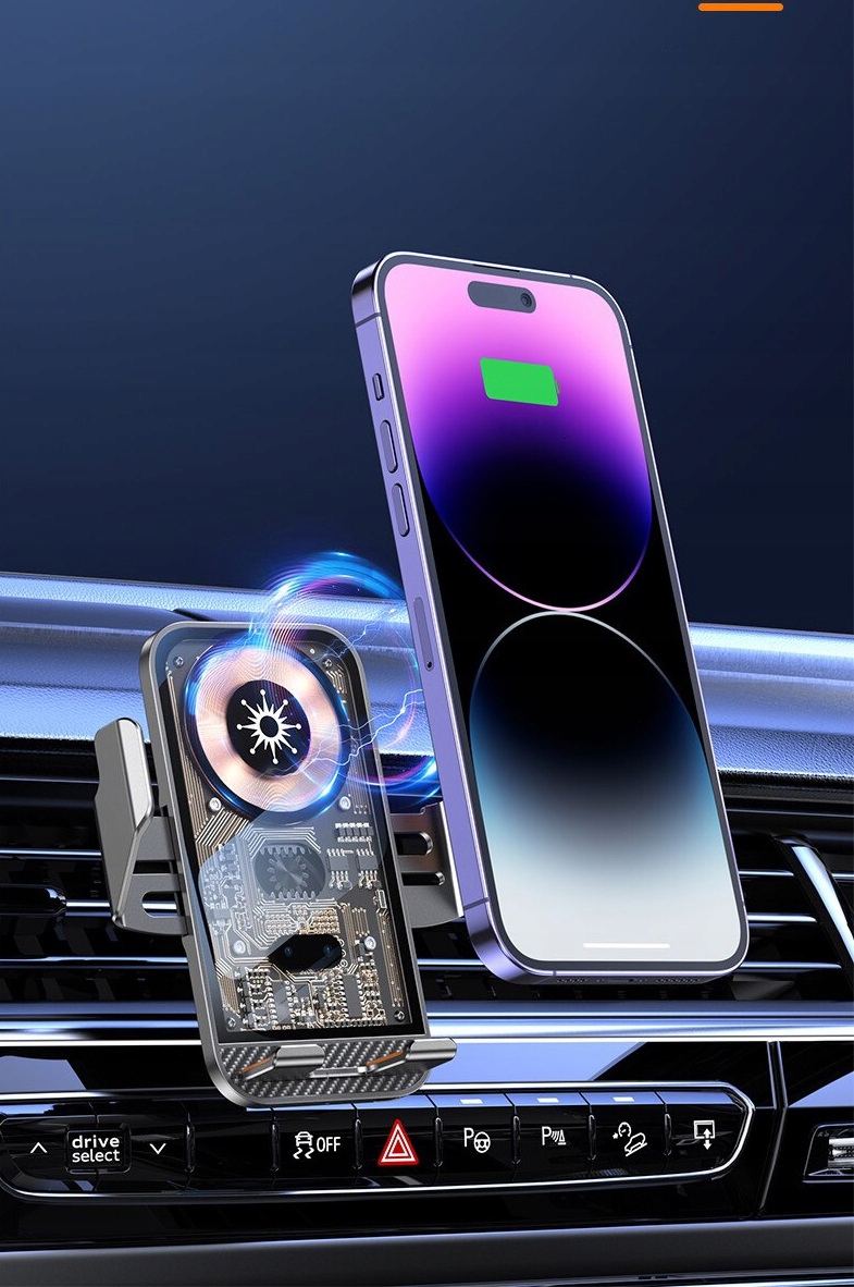 С помощью автомобильного держателя GPS-карты на экране смартфона останутся на виду. во время каждой поездки. Функция автоматического обнаружения за несколько секунд отрегулирует мощность оборудования, размещенного в зоне беспроводной зарядки, чтобы обеспечить быструю и безопасную зарядку.