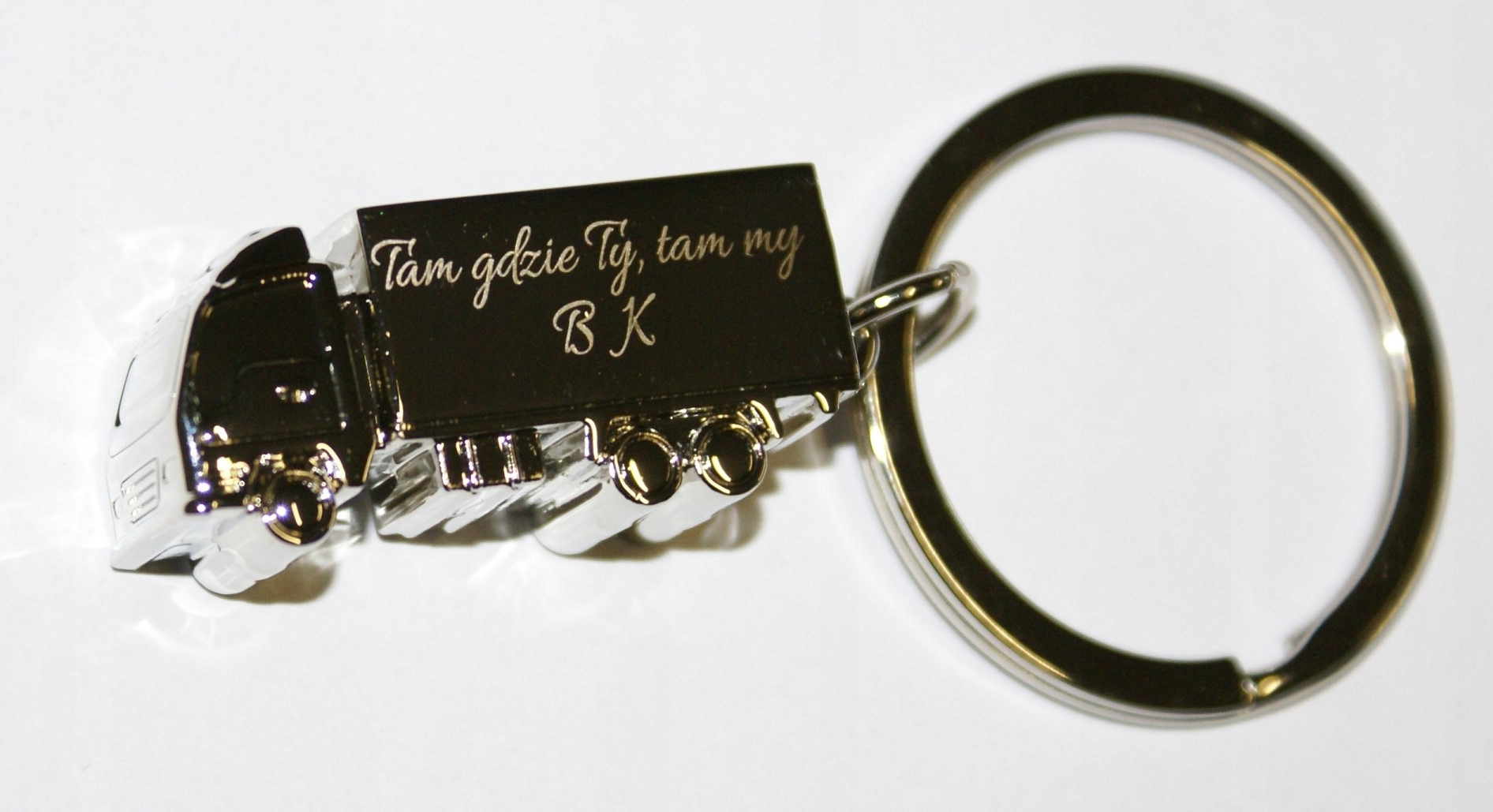 В этом аукционе предлагаю сделать надпись и гравировку на металлическом брелоке для грузовика. Брелок из хромированного металла, упакованный в элегантную черную коробочку. Брелок представляет собой миниатюру грузовика, уникальной трехмерной формы, 3D, чрезвычайно точно отражающую детали реальных грузовиков.
