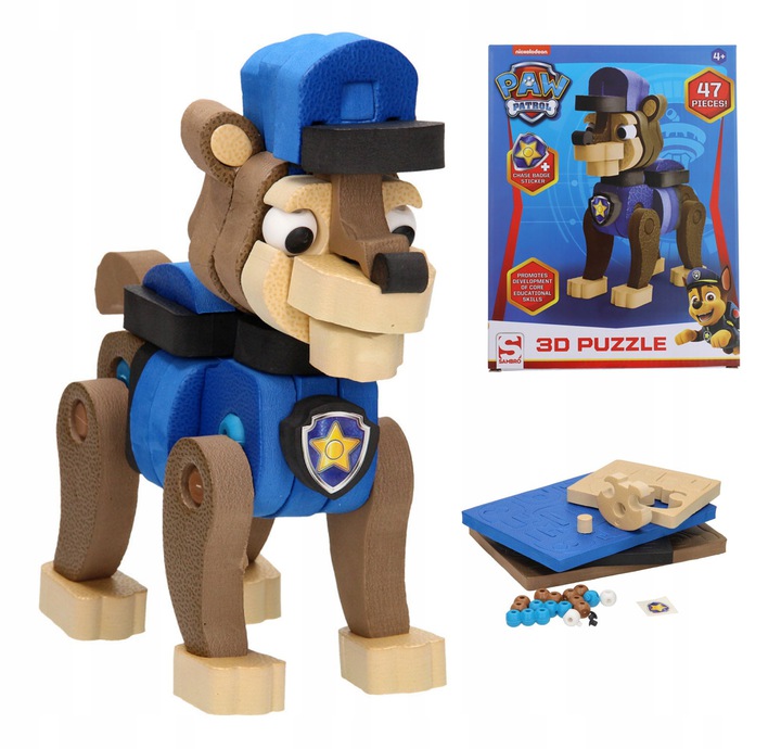 У вашего ребенка уже есть целая коллекция традиционных головоломок? Она фанатка мультфильма «Щенячий патруль»? Чтобы совместить интересы ребенка, мы предлагаем проверенный способ творческого развлечения со сказочным героем – 3D-пазлы. В наборе 47 элементов из пенопласта, который полностью безопасен для детей. Просто удалите пенопластовые элементы из форм и начните свое строительное приключение. После завершения этих уникальных головоломок создастся один из героев - ПОГОНЯ.