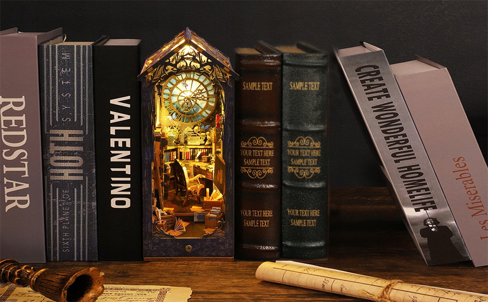 Изысканный дизайн: аккуратно нарежьте древесную стружку на небольшие фигурки и аккуратно соедините их, чтобы создать изящный книжный уголок. Реалистичная постановка сцены прекрасно восстанавливает миниатюрный мир в уголке книги, позволяя ощутить очарование и чудесный мир миниатюр