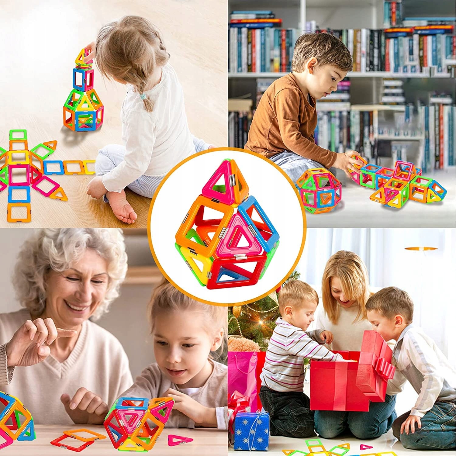 Эта магнитная игрушка содержит 15 треугольников, 12 квадратов, которые можно объединить для создания различных дизайнов, чтобы стимулировать воображение ребенка и творчество. Дополнительная транспортная сумка сопровождается логической игрушкой, которая облегчает очистку и хранение.