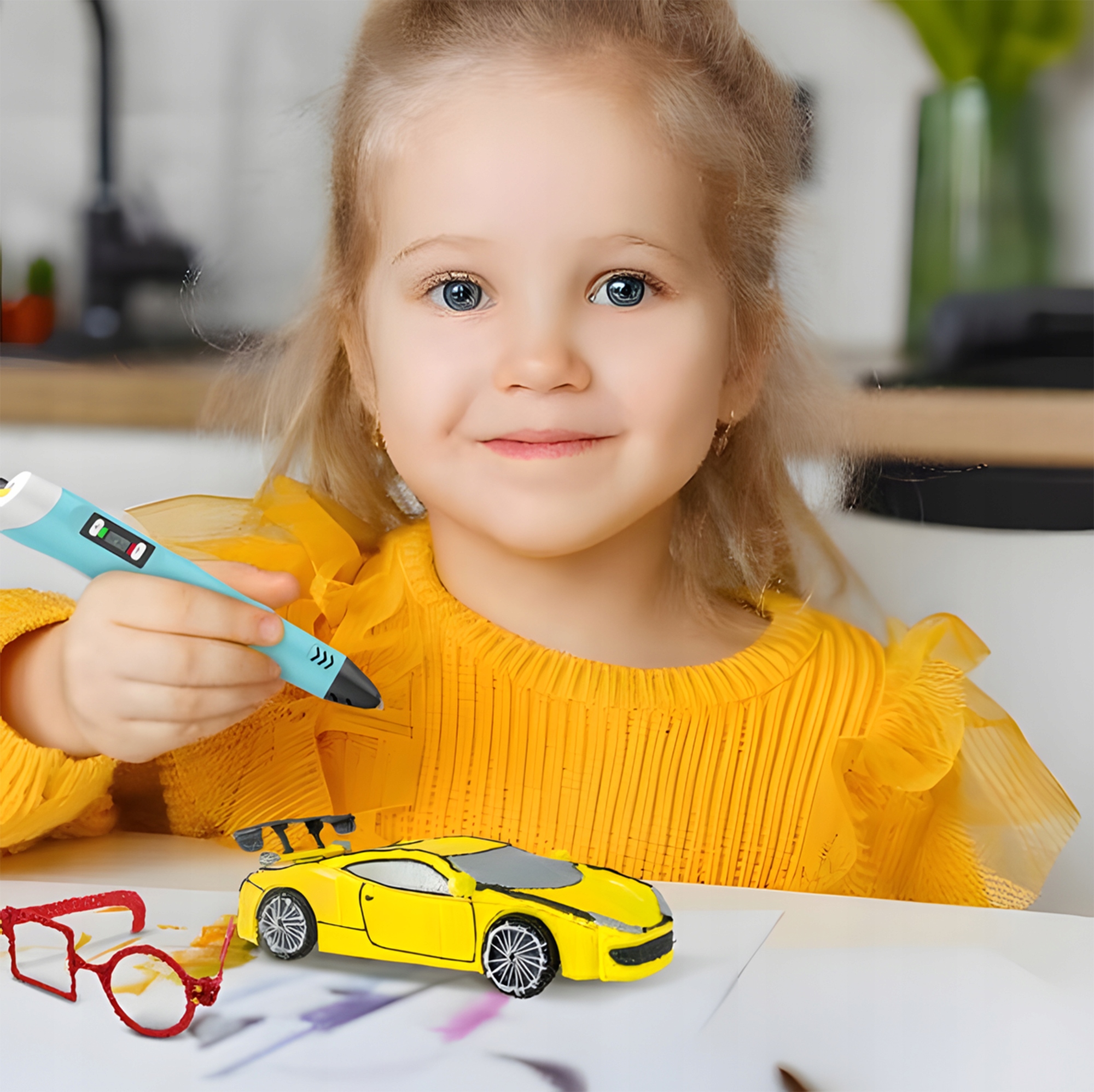 3D -ручка для детей принтер + PLA 110 метров синие вставки
