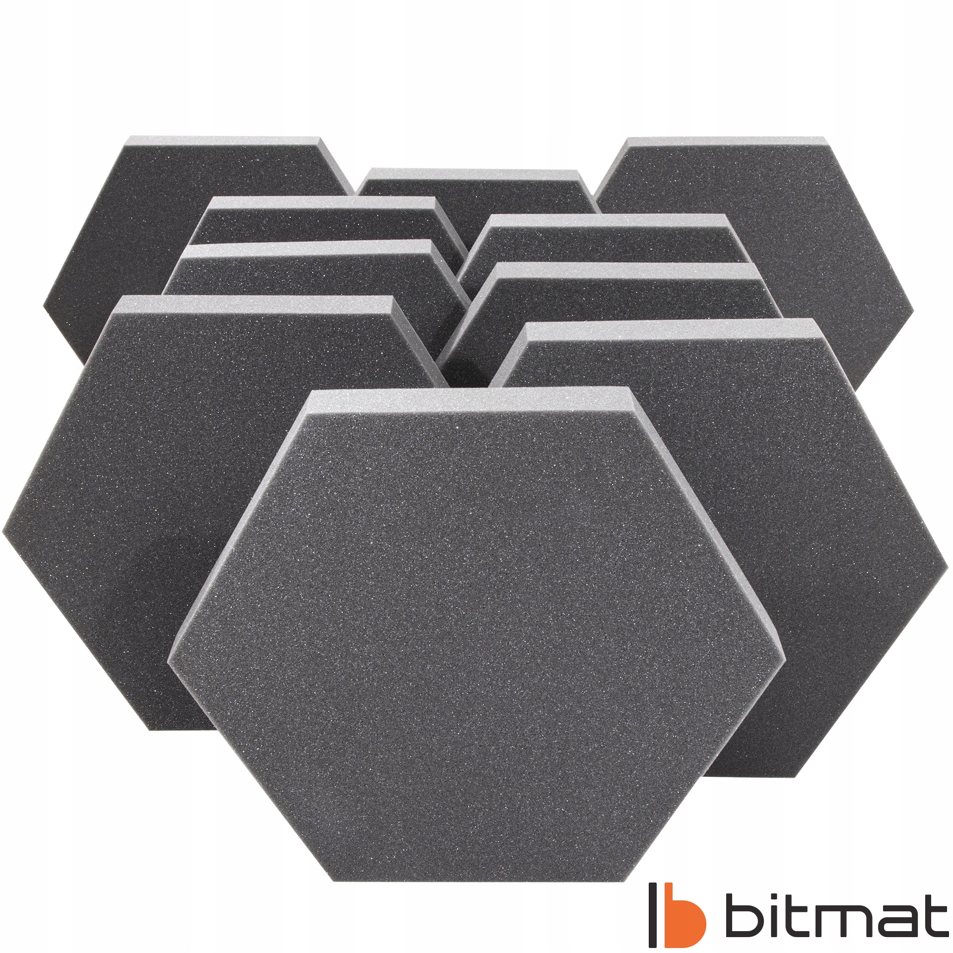Акустическая пена Bitmat шестигранная, также называемая акустической панелью, изготовлена из вспененного полиуретана и имеет структуру с открытыми порами. Использование соответствующего материала идеально подходит для студий и музыкальных комнат/учебных кабинетов, поскольку улучшает разборчивость речи и вокала. Это оптимальное приложение, которое при относительно небольших затратах позволяет предотвратить реверберацию, улучшить качество звука в жилых и рабочих помещениях, создать современный дизайн.