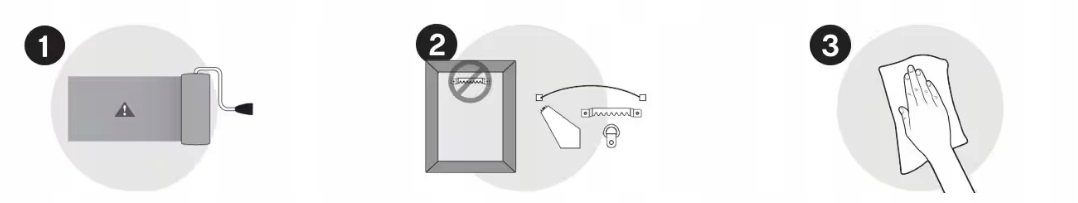 ✅ Шаг 1: Снимите раму, схватив ее по нижним углам и отрывая ее от стены вверх и друг к другу в направлении от стены. Не тяните по прямой линии.
