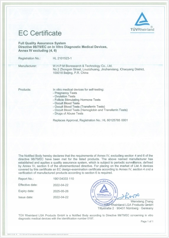Все тесты Hypermedic ® продаются в герметике, обеспечивая высочайшее качество упаковки. Self -Control, который требуется в Европейском союзе, сертификат качества CE, выданный уведомленным подразделением TUV с номером 0197.