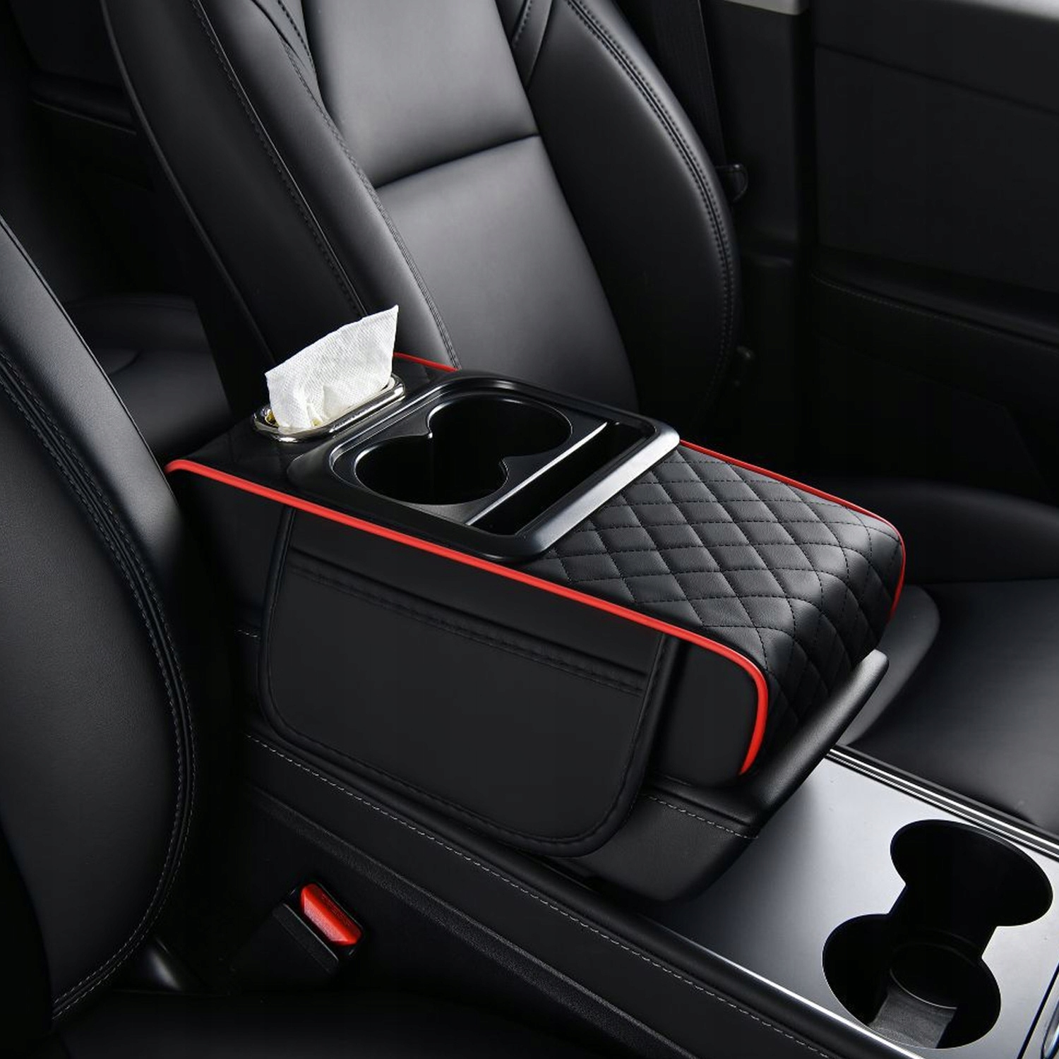 🚗 Многофункциональный дизайн : это практическое перекрытие подлокотника имеет встроенную коробку для носовых платков, подстаканник, гнездо мобильного телефона и боковые карманы, которая обеспечивает легкий доступ к салфеткам, чашкам, мобильным телефонам, картам, ключам, ручкам и другими небольшими предметами. подходит для пассажирских автомобилей, внедорожников и различных моделей седанов. Его стильный и гладкий дизайн подчеркивает красоту интерьера автомобиля.