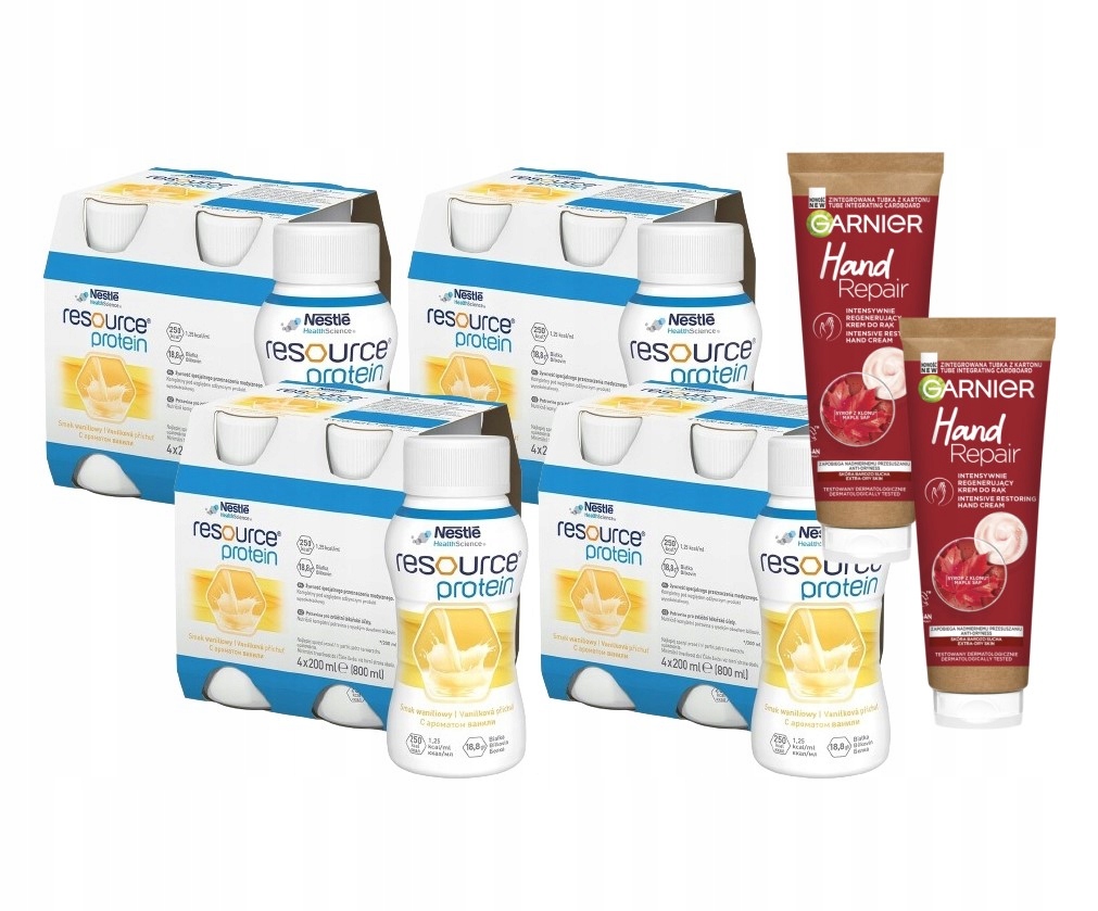 4x ресурсный белок Nestle с ванильным вкусом 4x200 мл h1> + 2x Бесплатный крем Гарнье Ремонт рука веганский формула 75 мл h2>