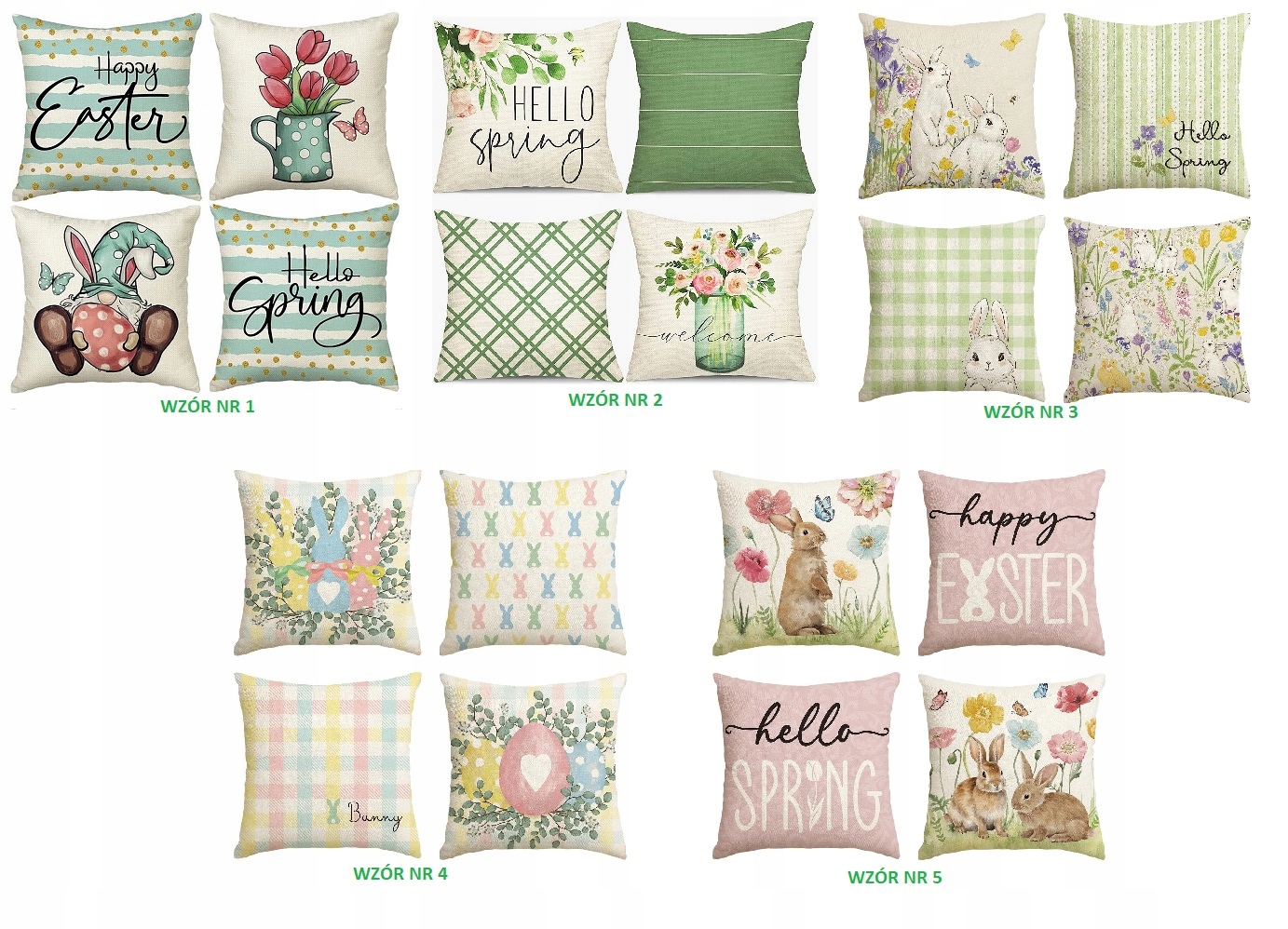 Набор из 4 подходящих наволочков с весенними и пасхальными узорами