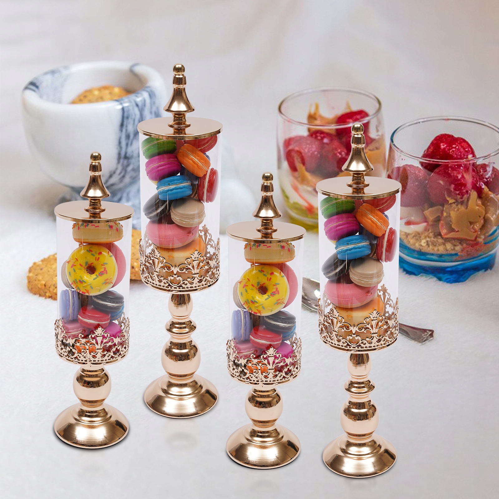 - Красивые и привлекательные : изысканные узоры, украшенные в нижней части прозрачного тела акриловой канистры, приятный золотой цвет и гладкие линии, стремятся к гармонии и красоте, вместе с красочной конфеткой (не включенной), которые сохранены, которые станут цветным цветом в домашнем рекляции и добавляют интерес к жизни.