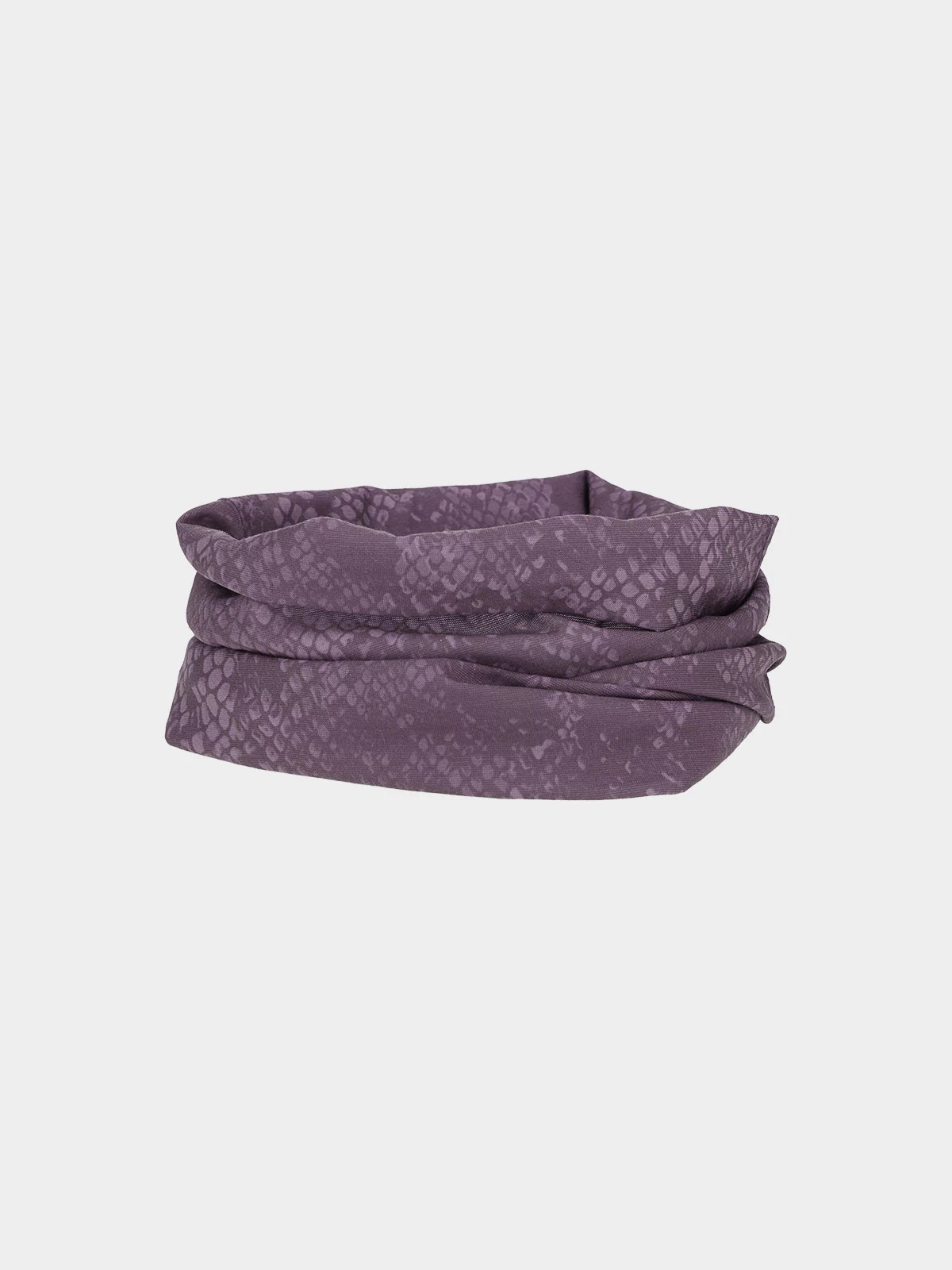 Многофункциональный, бесшовный и эластичный шарф, надеваемый через голову. Изготовлен из тонкого, нежного, легкого и быстросохнущего трикотажа из полиэфирного микроволокна.