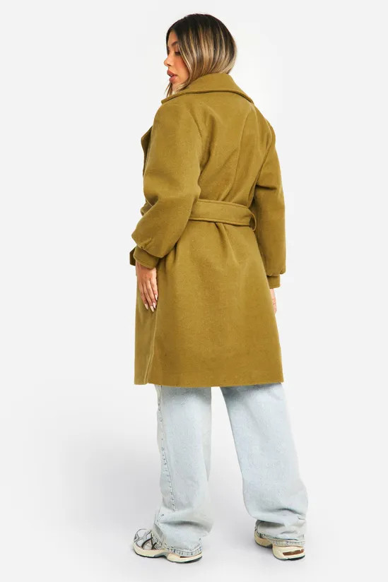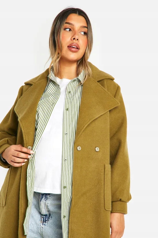 4H2A1 BOOHOO Оливковое пальто с полосой A02 M
