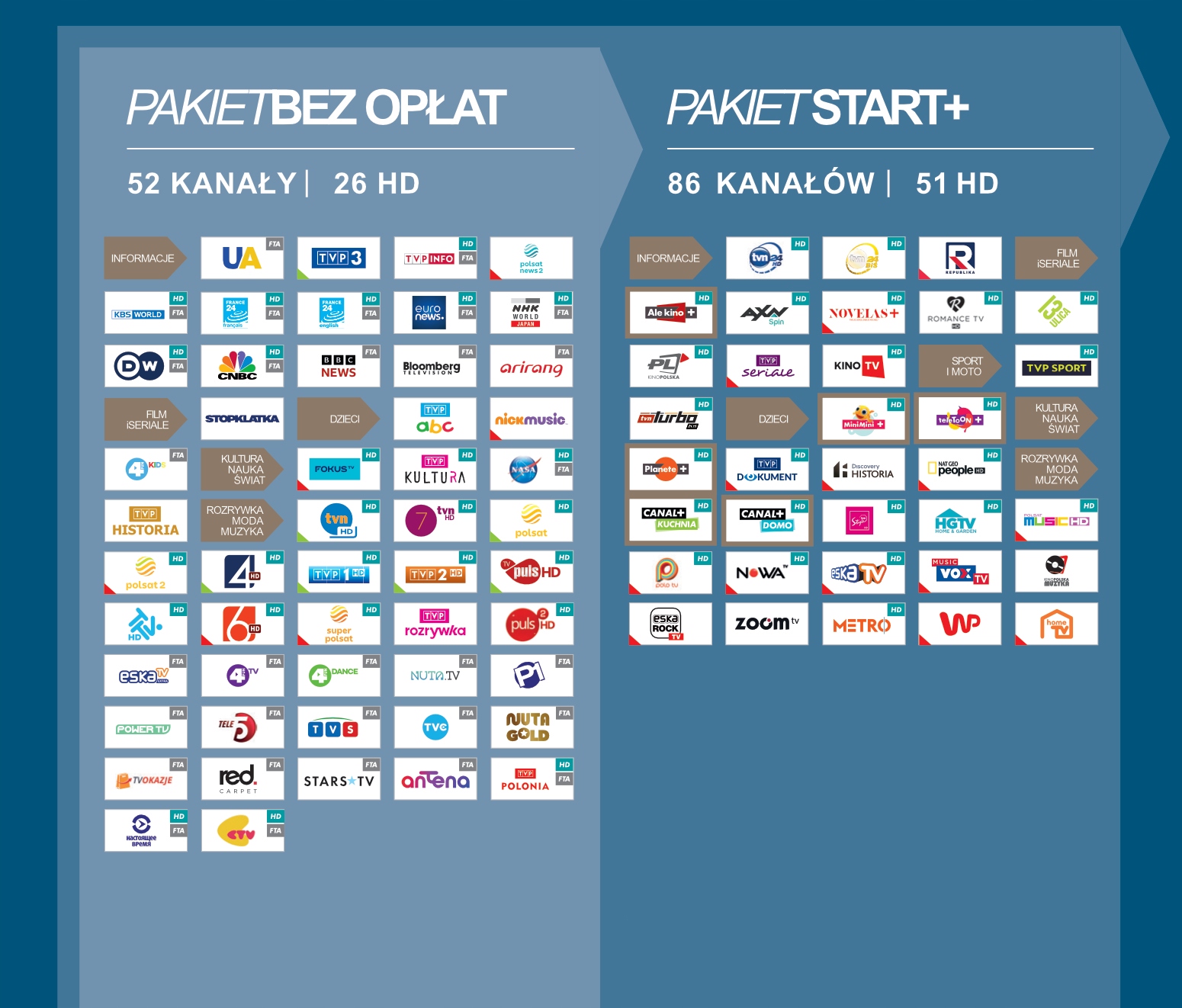 - После месяца вы решаете и выбираете: - Предложение без контракта и пополнения 76 каналов - или специальные предложения с контрактом от 29,99 злотых в месяц