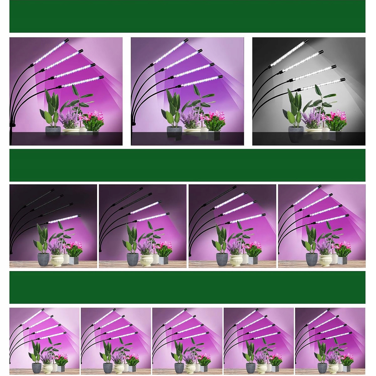 - 3 РЕЖИМА СВЕТА - LED лампа для выращивания Растение оснащено лампами, излучающими свет двух длин волн. Этот светильник для растений с 4 головками включает в себя 3 типа светодиодных ламп: 1. красный свет (3000K), похожий на солнечный свет, имитирующий естественную среду растений; 2. Blu-ray (3000K), подобный солнечному свету, имитирующий естественную среду обитания растения; 2. Красный свет (660 нм) + синий свет (460 нм): способствуют фотосинтезу, укоренению, прорастанию, цветению и плодоношению; 3. Красный + синий (380–780 нм), обеспечивающий универсальный полный спектр, который может удовлетворить потребности роста всего растения с различными потребностями. Эта технология влияет на все этапы роста растений, бутонизации и цветения.