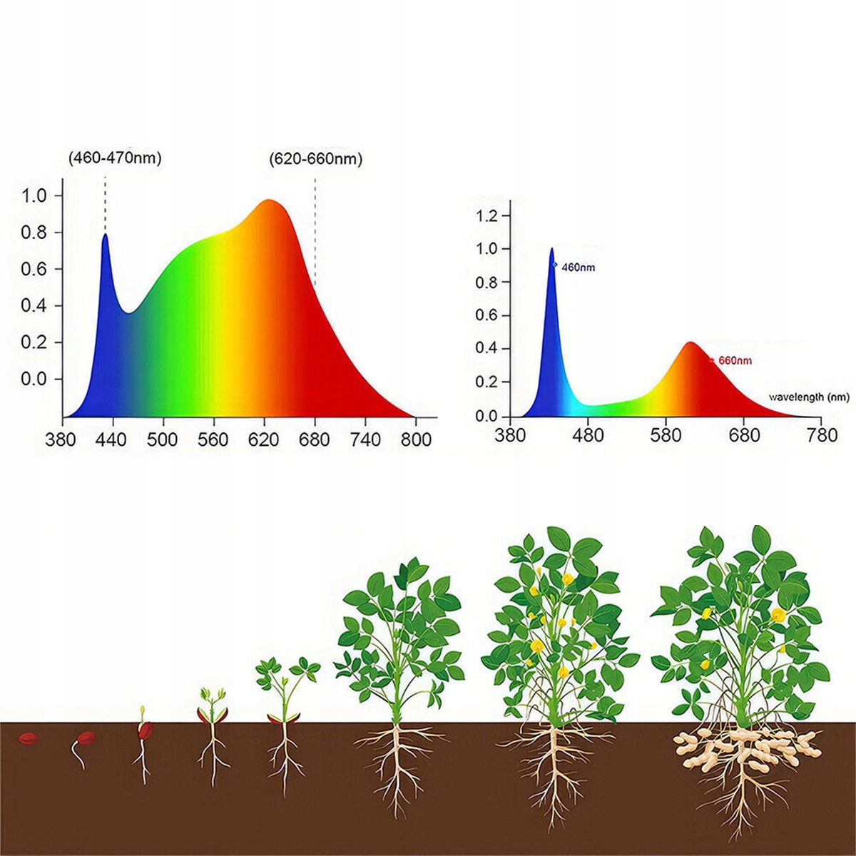 - ПОДДЕРЖИВАЕТ ФОТОСИНТЕЗ - Светодиодная лампа для выращивания растений поддерживает фотосинтез, благодаря чему облегчает развитие и питание растений. Его использование позволяет правильно ухаживать за вашими растениями и их вегетацией, включая как небольшие сеянцы и рассаду, так и взрослые растения
