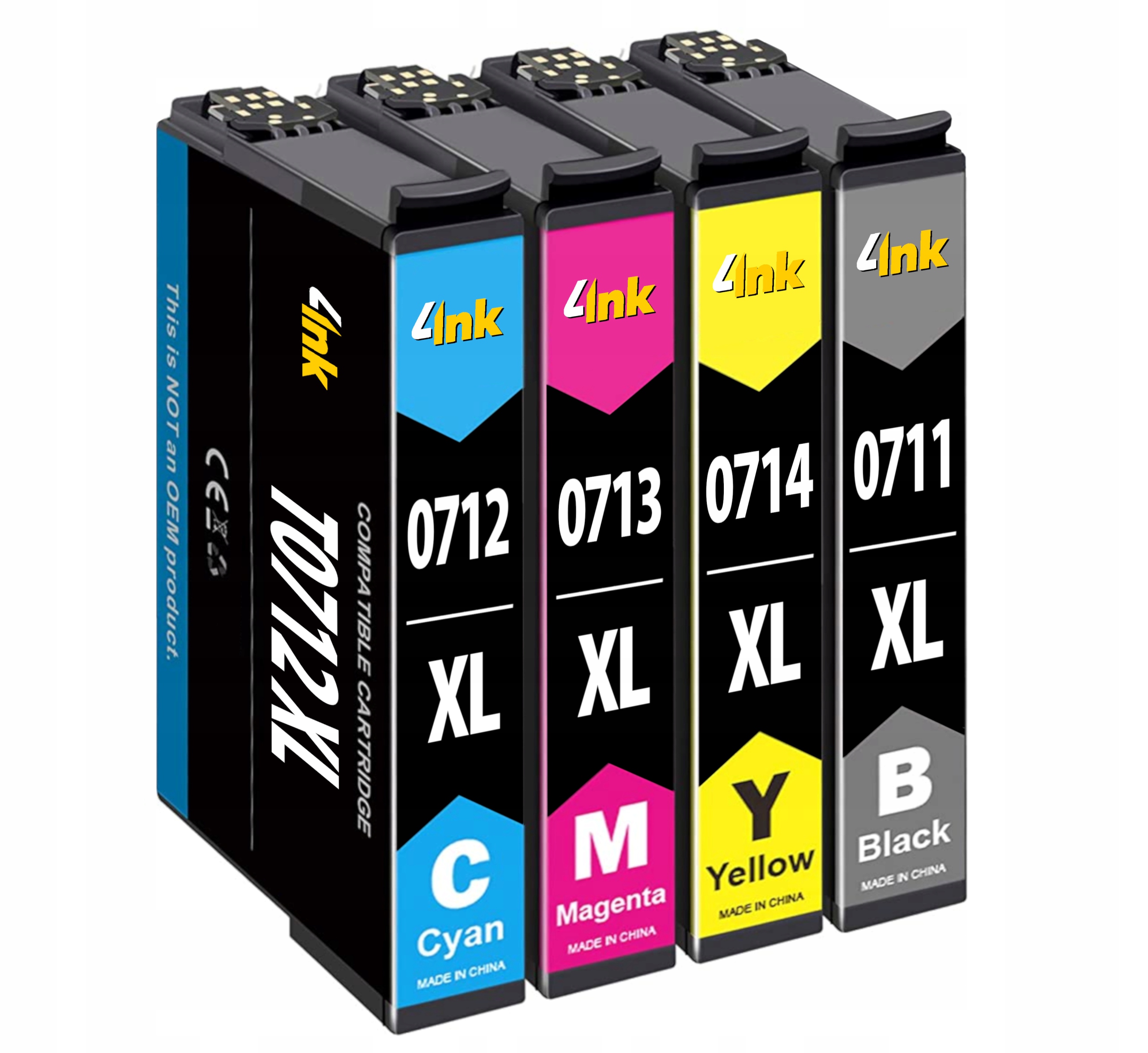 4x совершенно новых чернила 4INK для принтеров EPSON — модели 0711 / 0712 / 0713 / 0714 XL