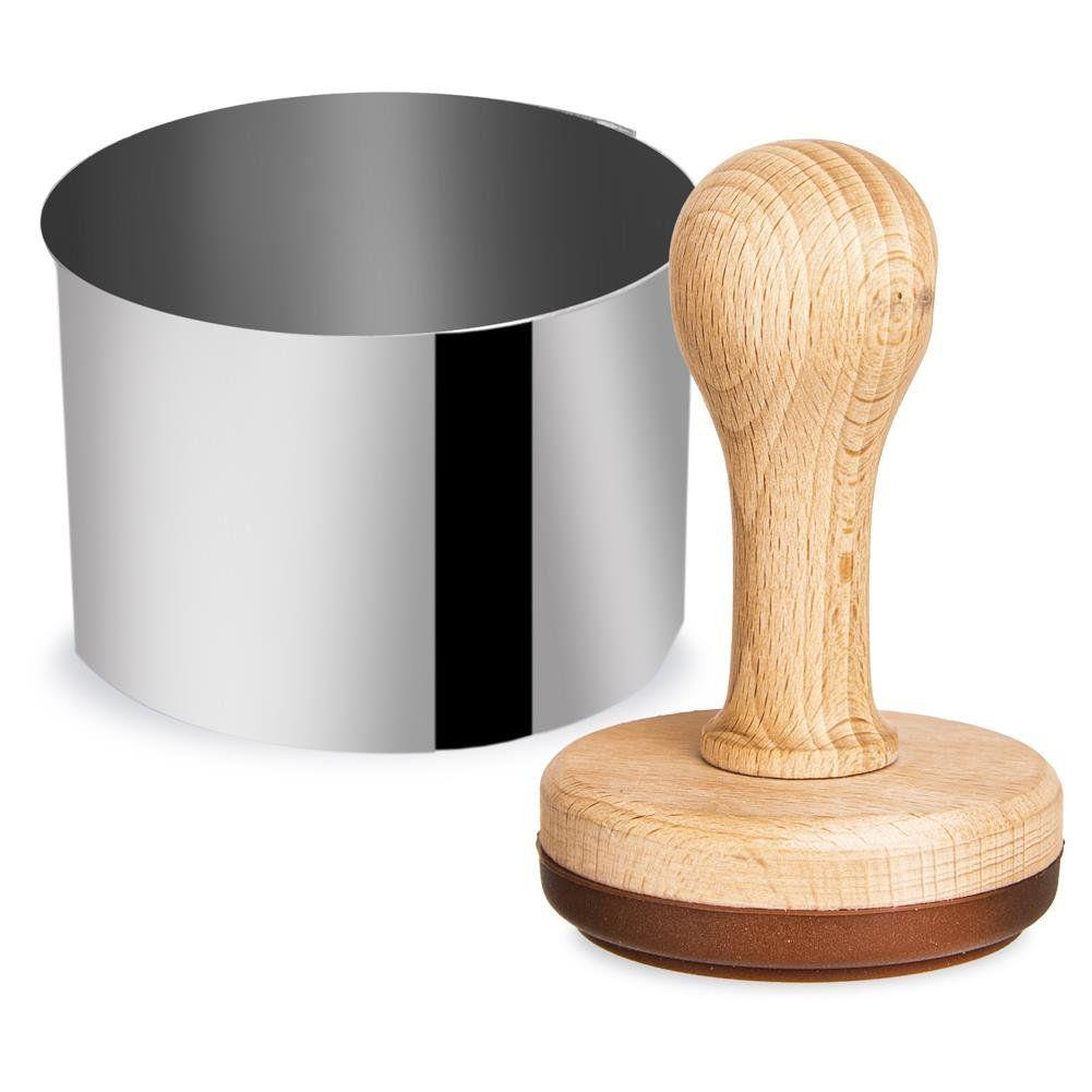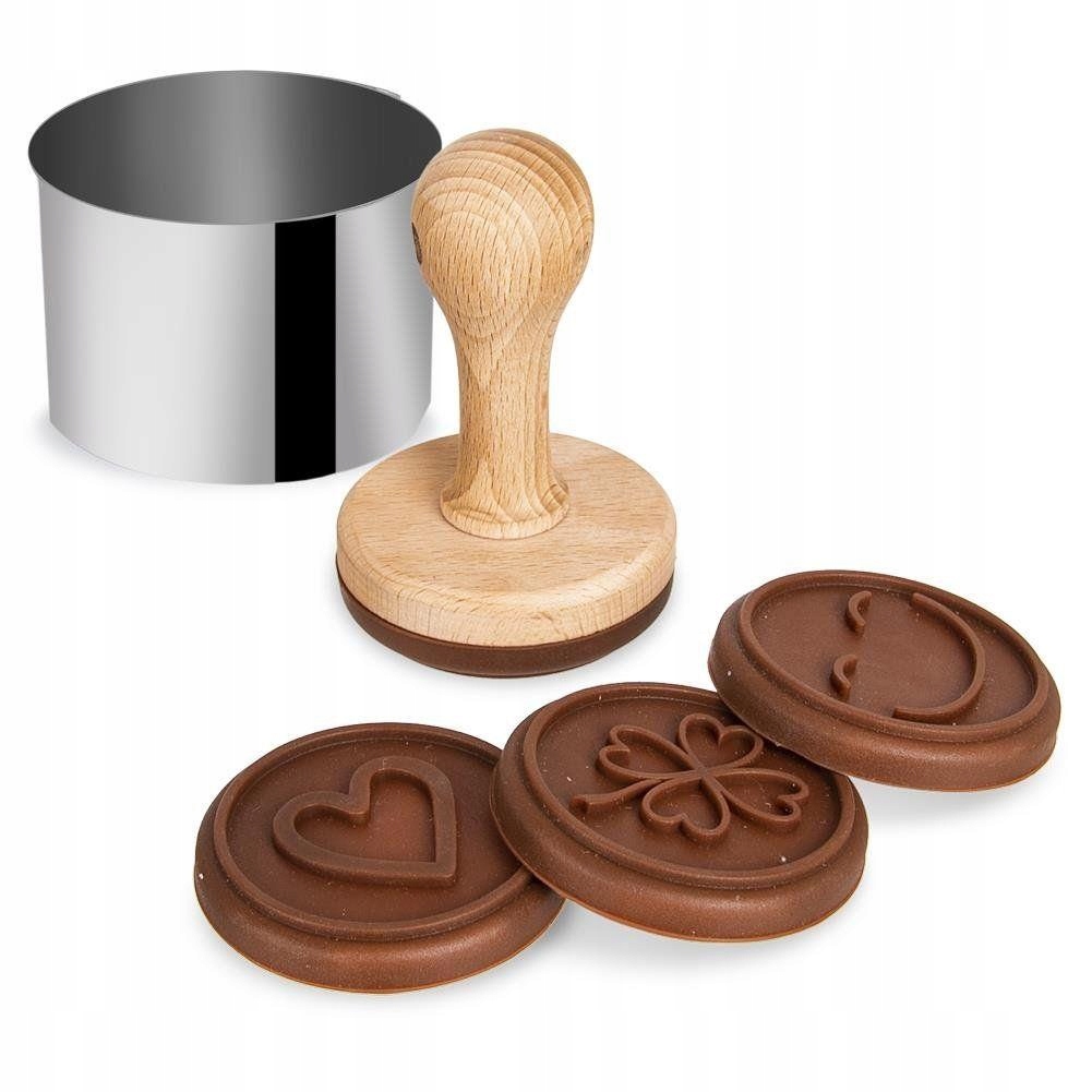 ✔️ SOLID - Деревянный штамп для украшения печенья с четырьмя силиконовыми накладками. В комплект входит стальной обод для идеального приготовления и формирования печенья. Высота марки 9 см, диаметр накладки 6 см.