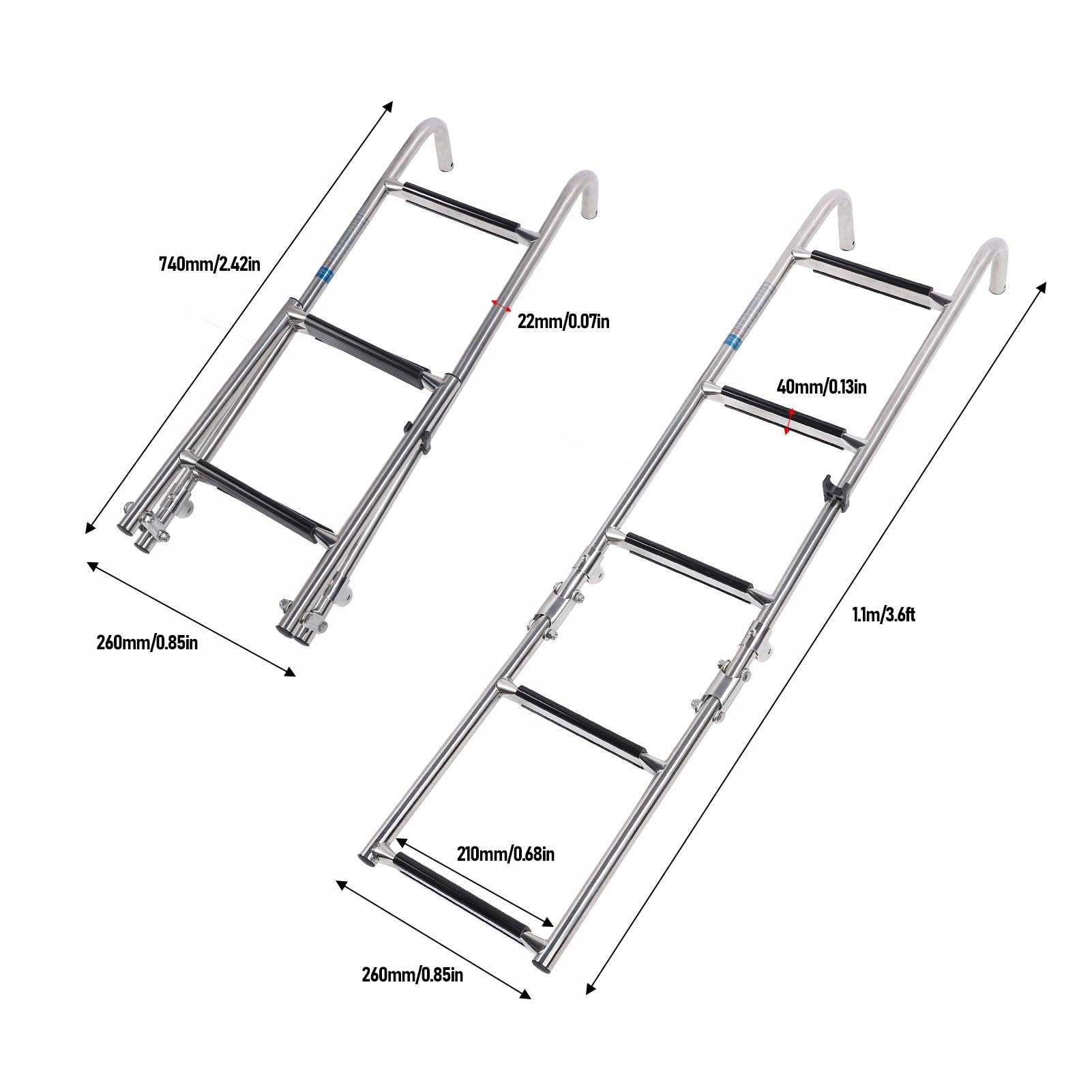 1. Премиум проект: изготовлен из 316 нержавеющей стали с зеркальными польскими поверхностями, эта лестница может выдержать острые морские среды, обеспечивая красивый внешний вид и удобный штрих.