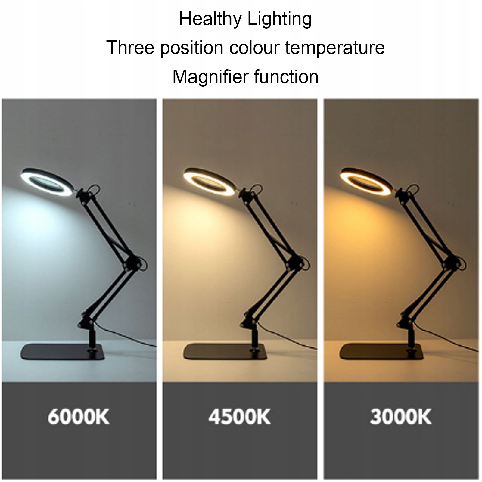 5. Универсальный и регулируемый: лампа имеет складную и регулируемую головку в диапазоне 360 градусов для многонаправленного освещения. Он оснащен толстым и загруженным основанием и зажимом, который обеспечивает легкое крепление к краю стола. Спецификация: Тип статьи: Светодиодный настольная лампа с увеличением