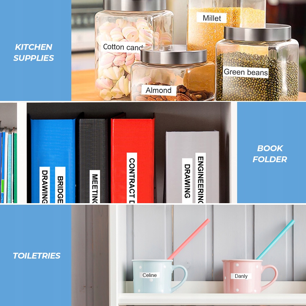 размер: 0,47 дюйма (12 мм) ширина x 26,2 фута (8 м) длина; лента. Помогает идентифицировать объекты и быстро организовать дом или офис.