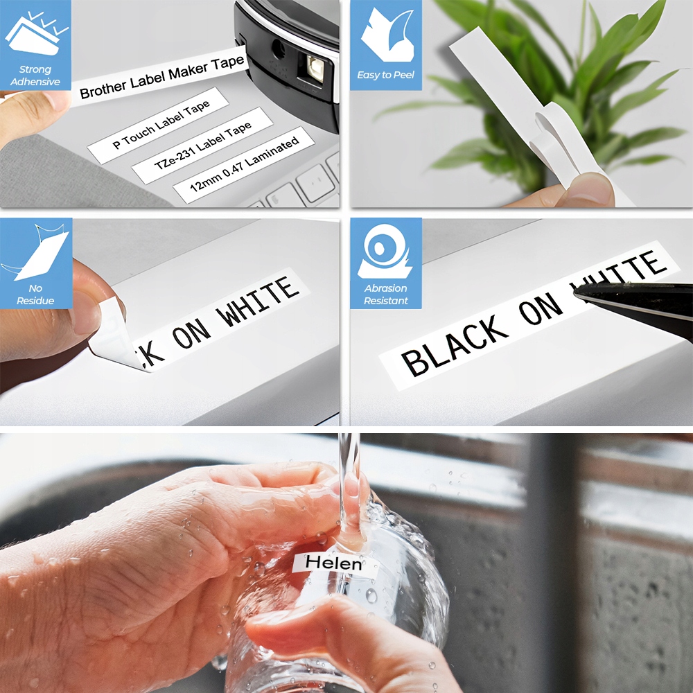 5 шт. Лента к маткеру для брата TZE-231 TZ-231,12 мм х 8 м, черный на белом