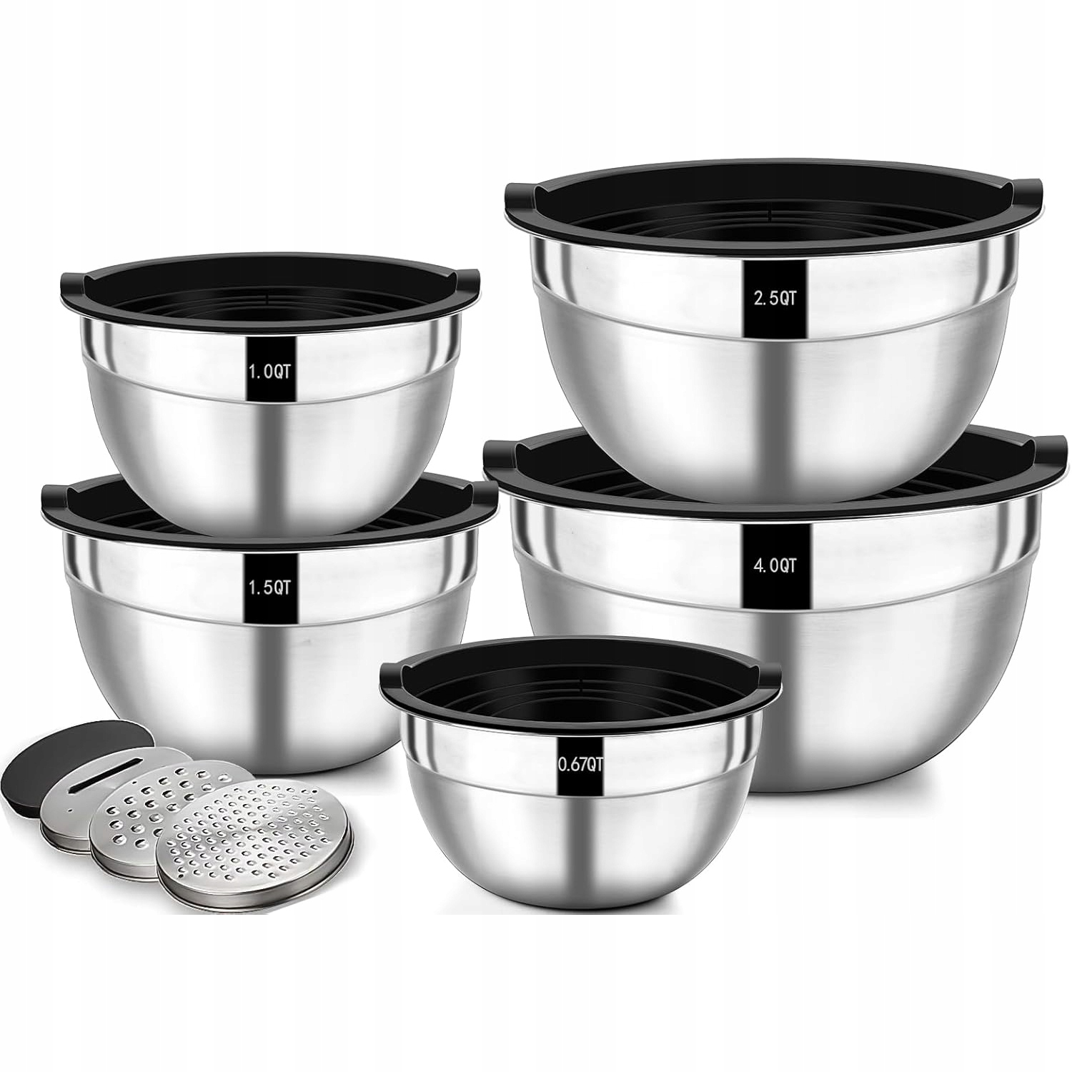 5 x смешивающие миски для смешивания нержавеющей стали и 3 погребения, миска с крышкой