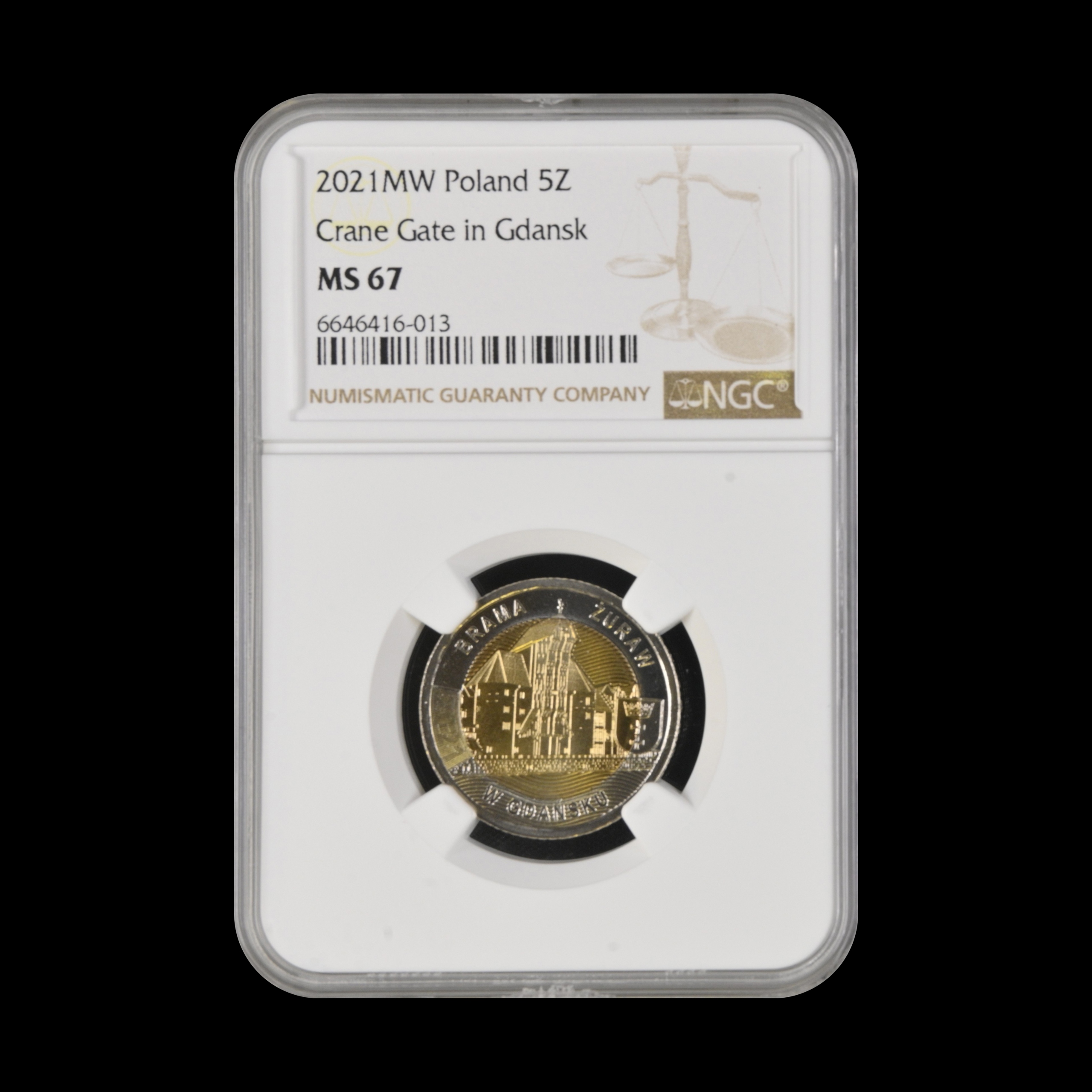 5 Zlotys, Gate of Crane в Gdańsk, 2021 NGC MS67