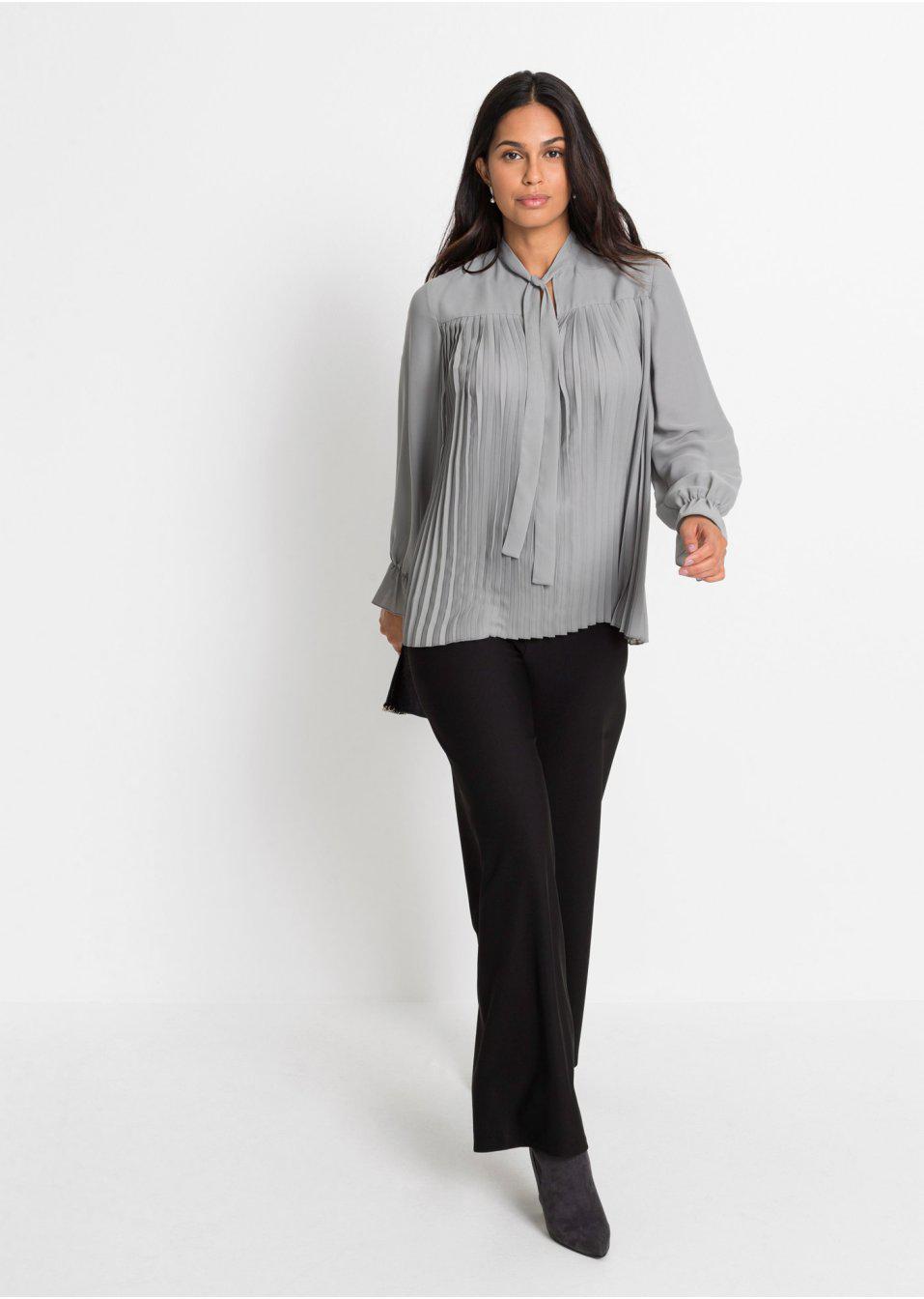 50 _ZT серая женская рубашка с плиссированной