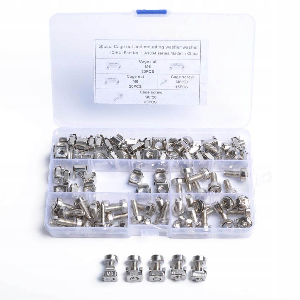 50 комплектів гвинтів M6 x 20 мм і кріпильних гайок для монтажу в стійку серверних шаф