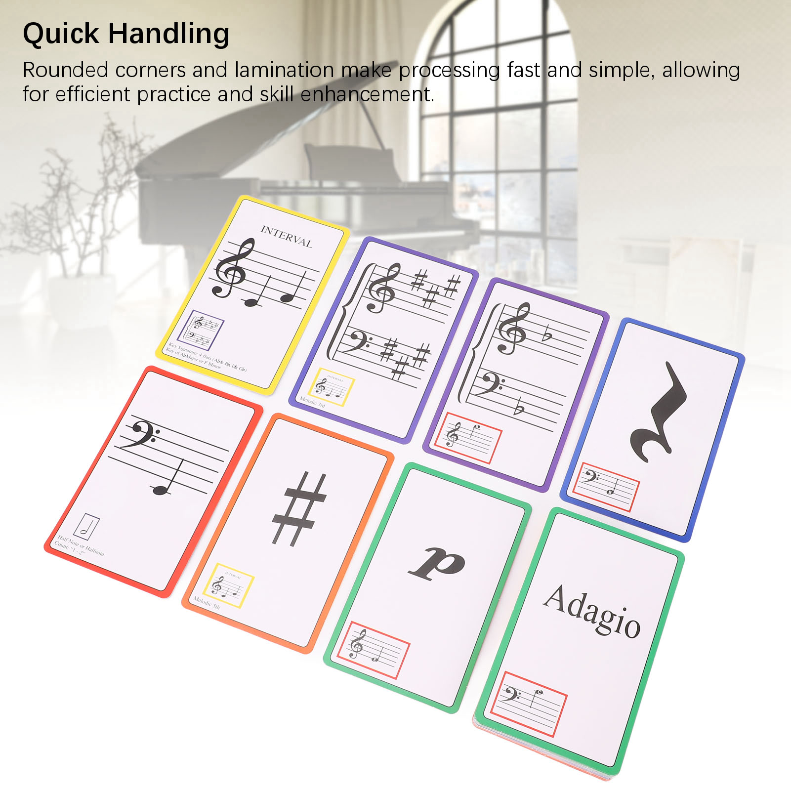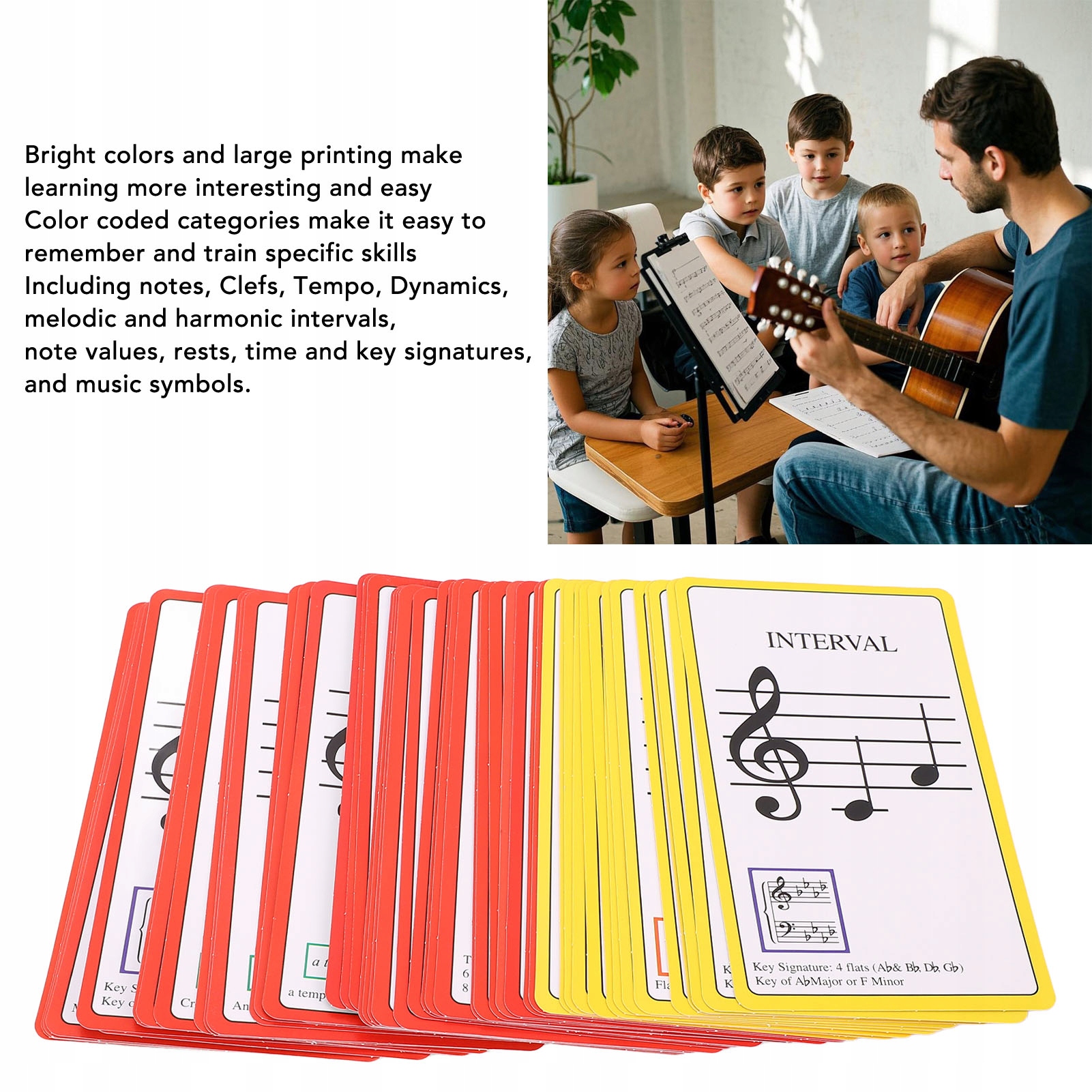 3. Жизнь и веселье: с яркими цветами и большим печати, музыкальные учебные карты делают процесс обучения приятным и атическим.