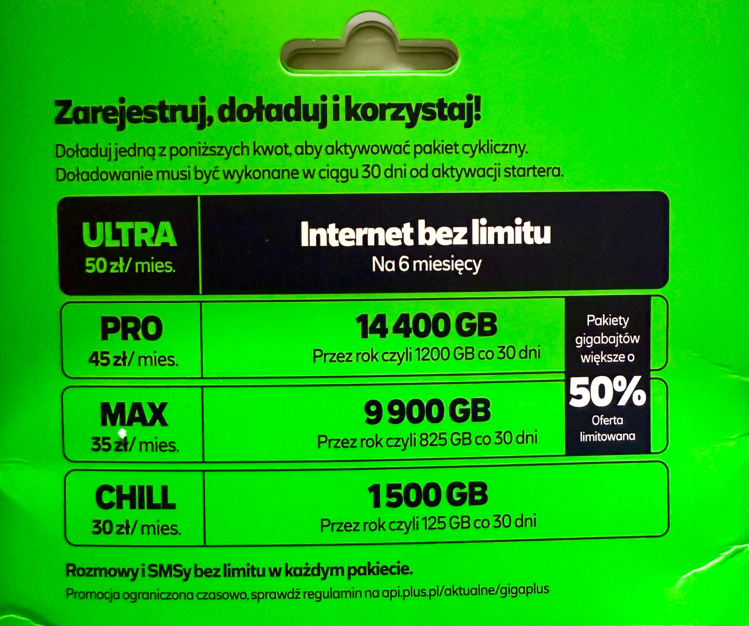 50 Оригинальные упакованные наборы стартеров плюс интернет без ограничения 5pln по цене 3,00 pln/pcs