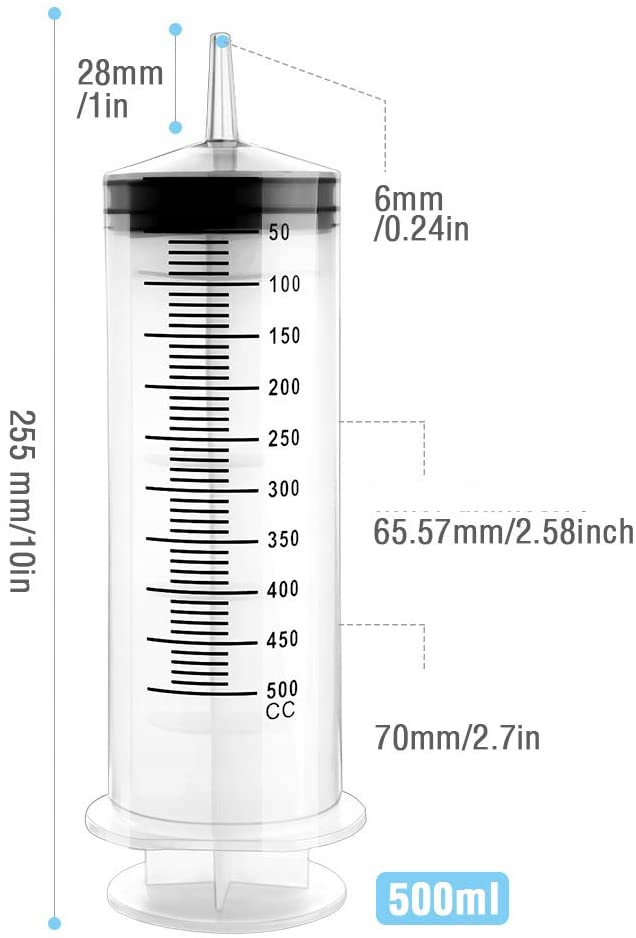 - Шприц большого диаметра облегчает мытье для следующего использования.