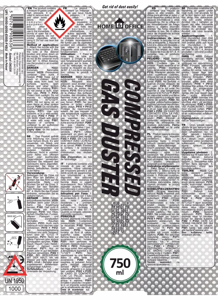 Препарат, содержащий смесь экологических газов, используемый для удаления пыли, грязи, жидкостей и всех других загрязнений, которые неплотно прилипают к поверхности очищать труднодоступные места струей сжатого газа под высоким давлением. Продукт не содержит фреона, без запаха, полностью биоразлагаем. Идеальный продукт для дома, мастерской и офиса!