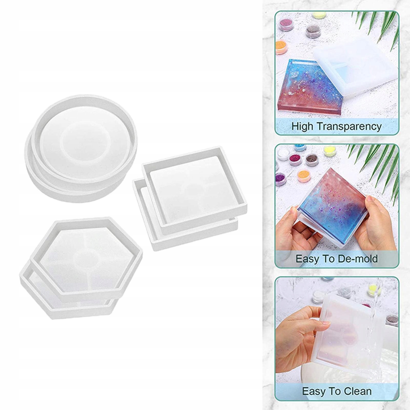 6 упаковок DIY Coaster Silicone Mold Епоксидні ливарні форми, включаючи круглі