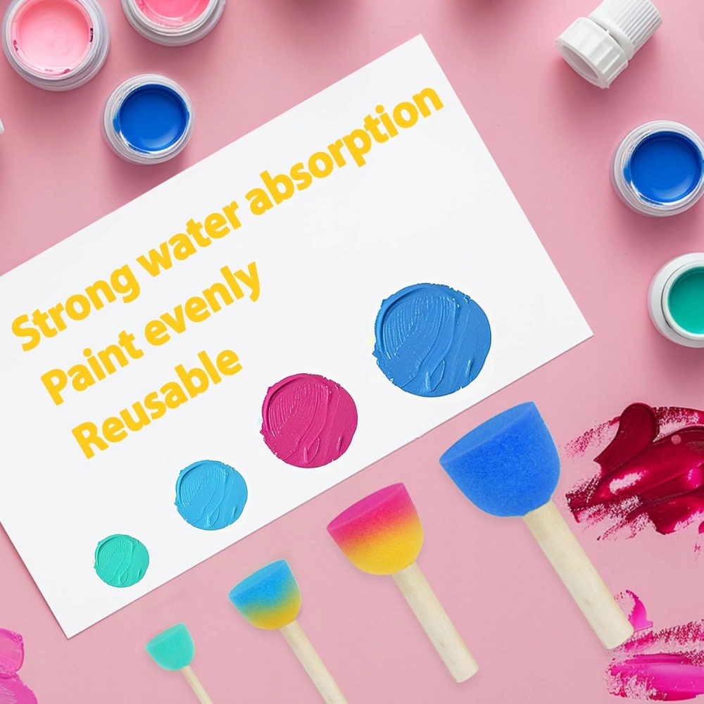 - Set 60 содержит четыре различных диаметра головки губчатой кисти и длину деревянной ручки, 20*1,5 см/8 см, 20*2 см/8,5 см, 10*3 см/9 см, 10*4 см/10см, подходящие для детей, чтобы держать, пожалуйста, проверьте размер.